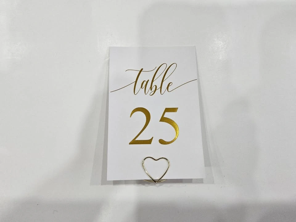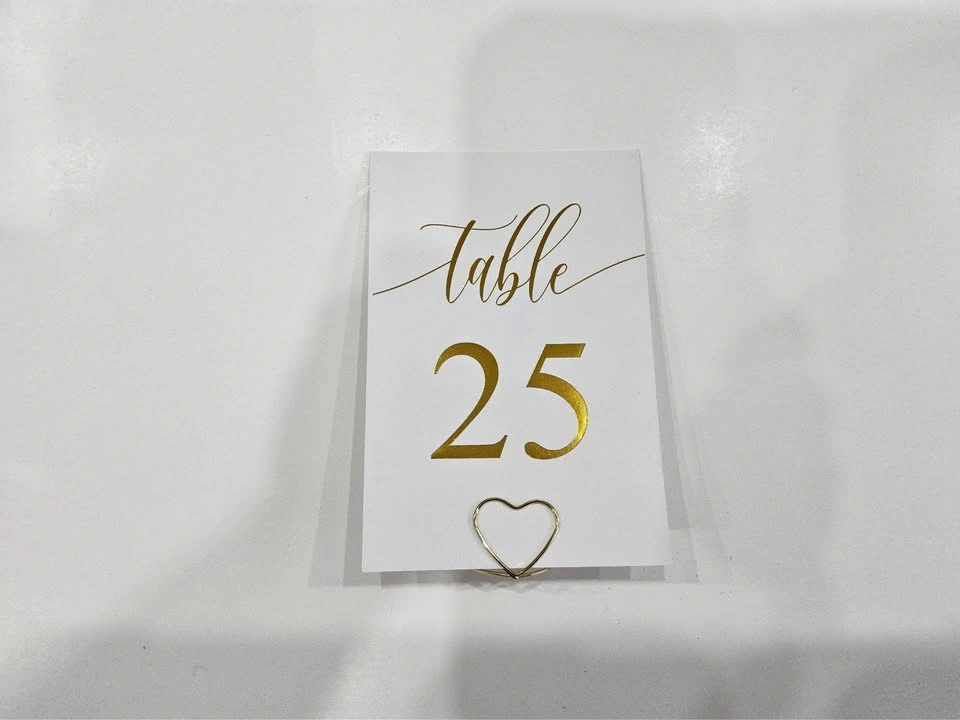 Introducing our Table Card Holders in GOLD, SILVER, or ROSE GOLD! Ideal for use as table number holders, menu holders, photo holders, event decorations, table sign holders, office memo holders, business cards, and name cards. They can be used for weddings, birthdays, anniversaries, bridal showers, home parties, celebrations, events, baby showers, graduation, Valentine's Day, engagement parties, or other occasions. These 2-inch table card holders are crafted for many uses, from displaying wedding signs and name cards to holding small pictures and food labels. It is ideal for weddings, parties, office spaces, and home decor. Crafted from top-tier iron wire material, these mini photo clip holders boast stability and resilience. The unique design on the clip adds an elegant touch. Beyond serving as table number holders, these versatile pieces function as table sign holders, name holders, wedding table number holders, memo clip holders, or photo stands. Perfect for a range of events, including weddings, parties, office use, and home decorations. Elevate your event with these table card holders that seamlessly blend simplicity, style, and durability. Whether it's a wedding celebration, a party, or everyday use, these holders add a touch of sophistication.