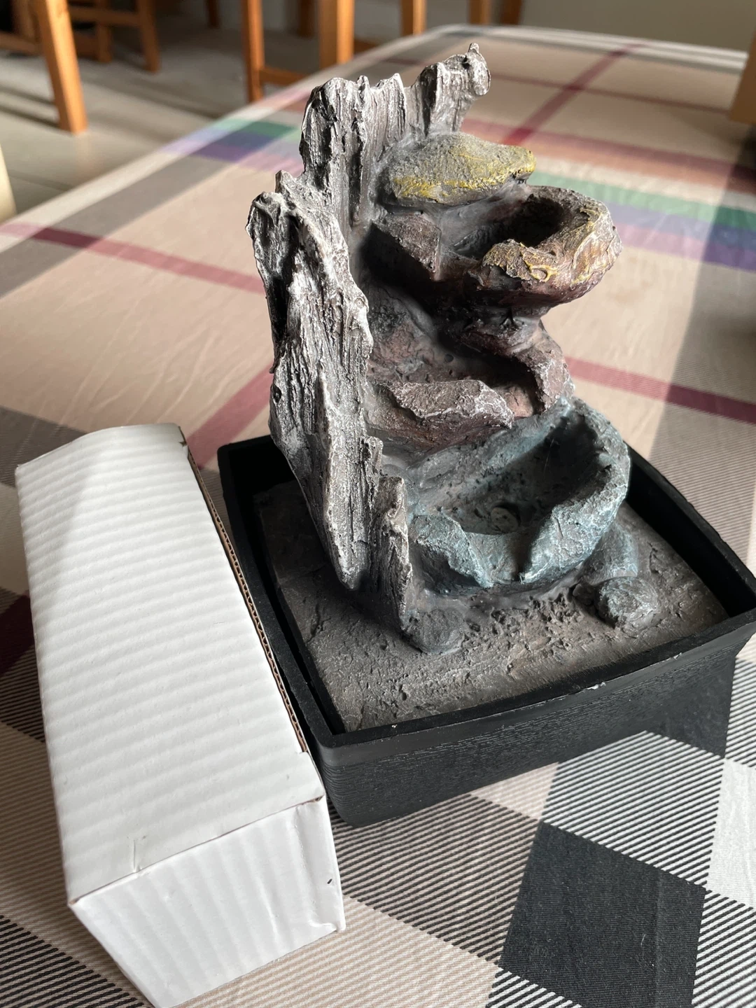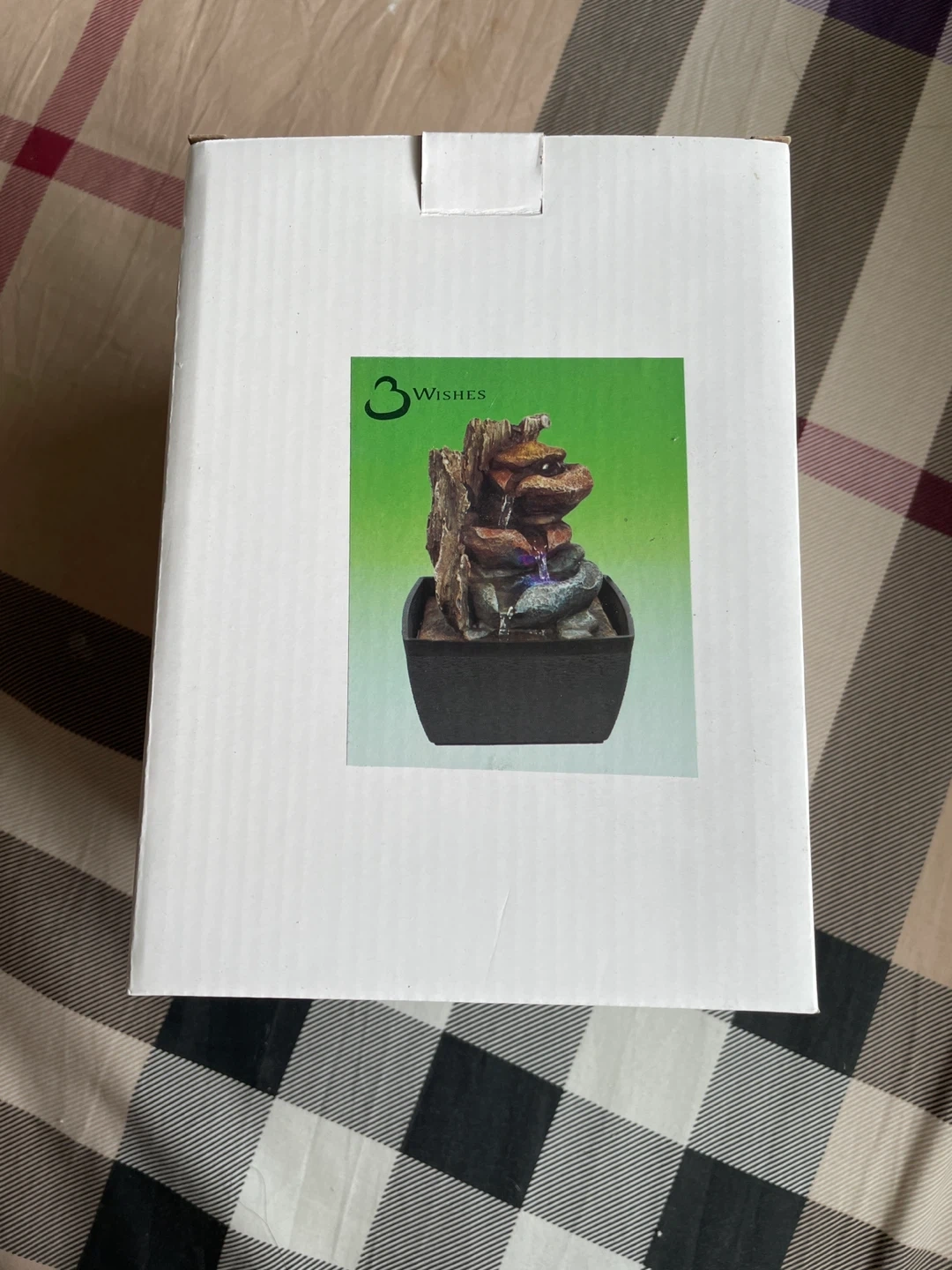 Cash only please! Only used once! I'm selling a tabletop fountain. It's in great condition and comes with its original box. This fountain is perfect for adding a relaxing ambiance to any room in your home. Dimension listed below might be a centimeter or two off.