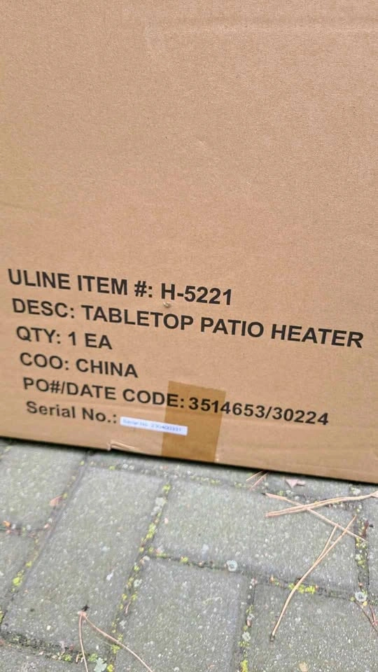 Tabletop patio heater serial number 3514653/30224. Never been used. Box only opened to read instructions. Porch pick up near Brant and Upper Middle.