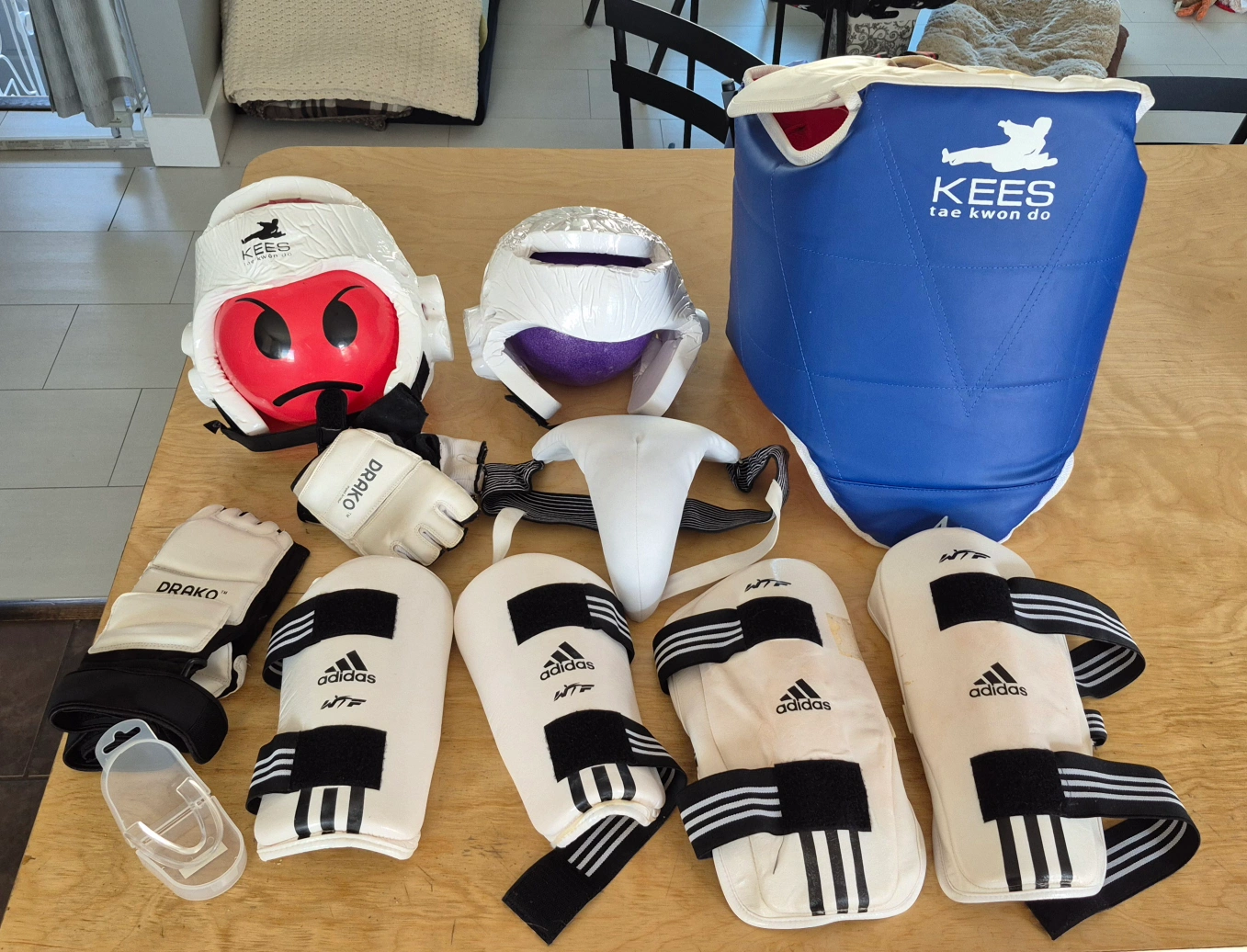 Selling a set of taekwondo gear! Includes: - Adidas WTF shin guards - Drako Impact Armour gloves - Kees headgear and chest protector - Other protective gear as shown in the photos All in good condition and ready for your next sparring session