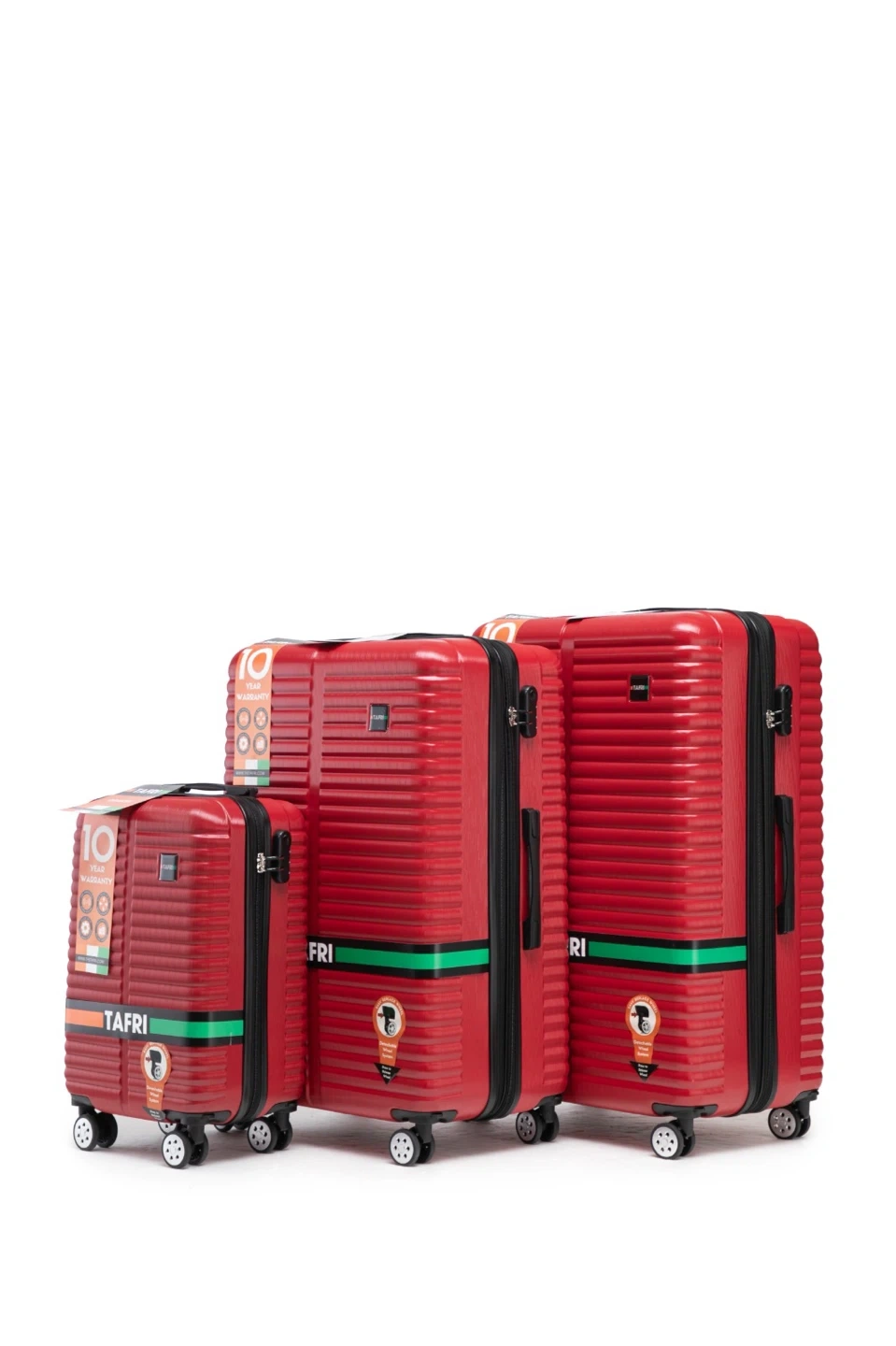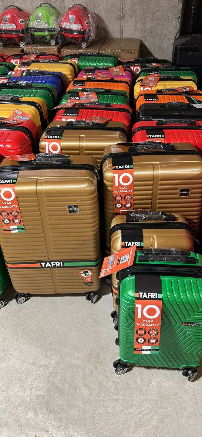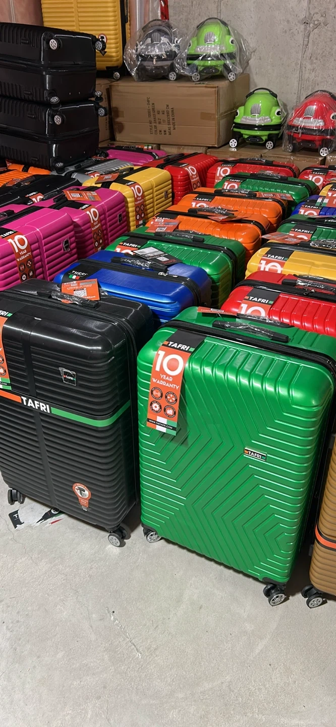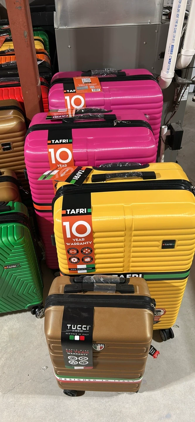 Looking to upgrade your travel gear? I have a Tafri luggage set available. This set includes three pieces in varying sizes, perfect for any trip, big or small. They come in blue, red, and silver. Each suitcase has a 10-year warranty!