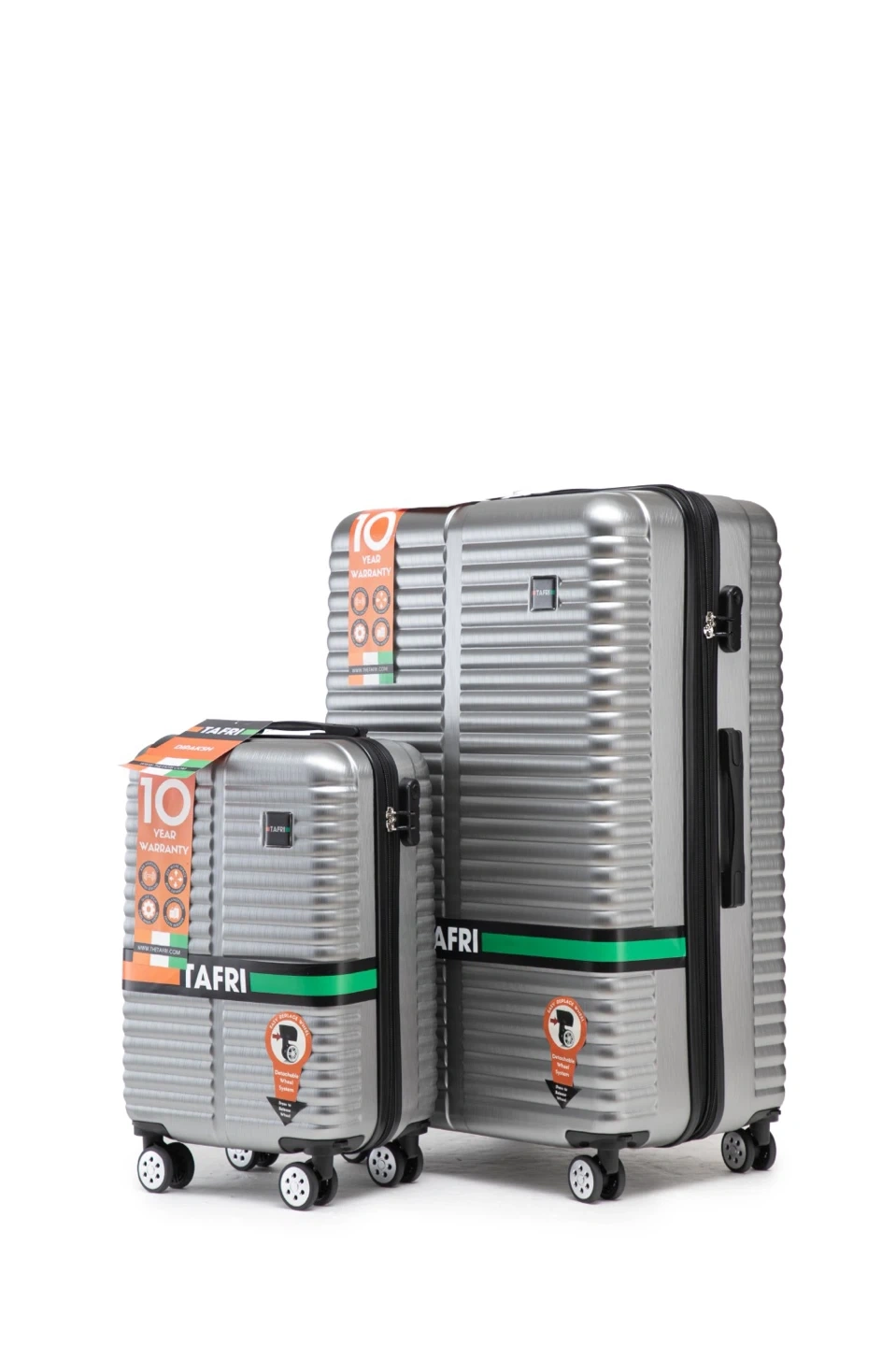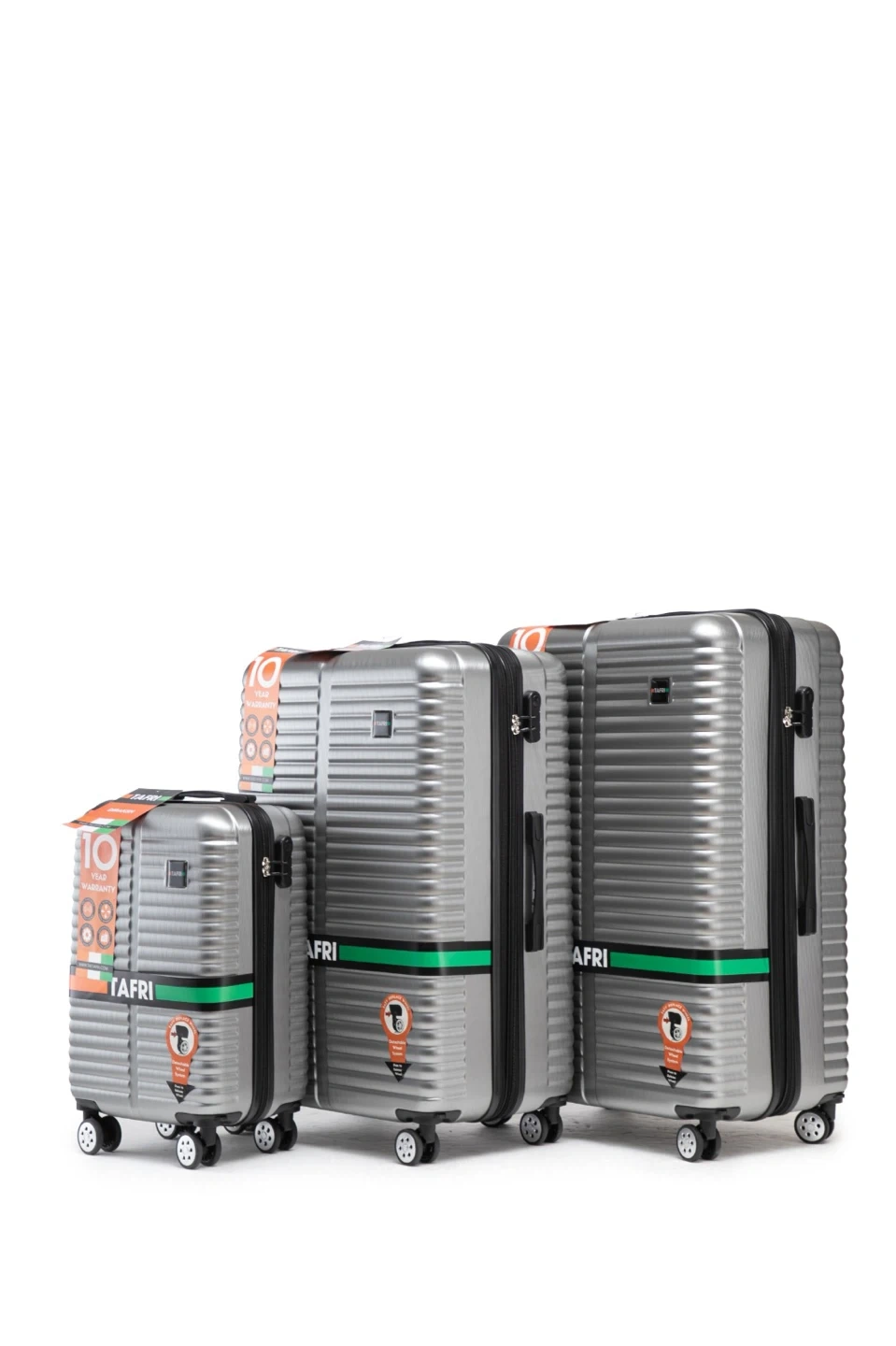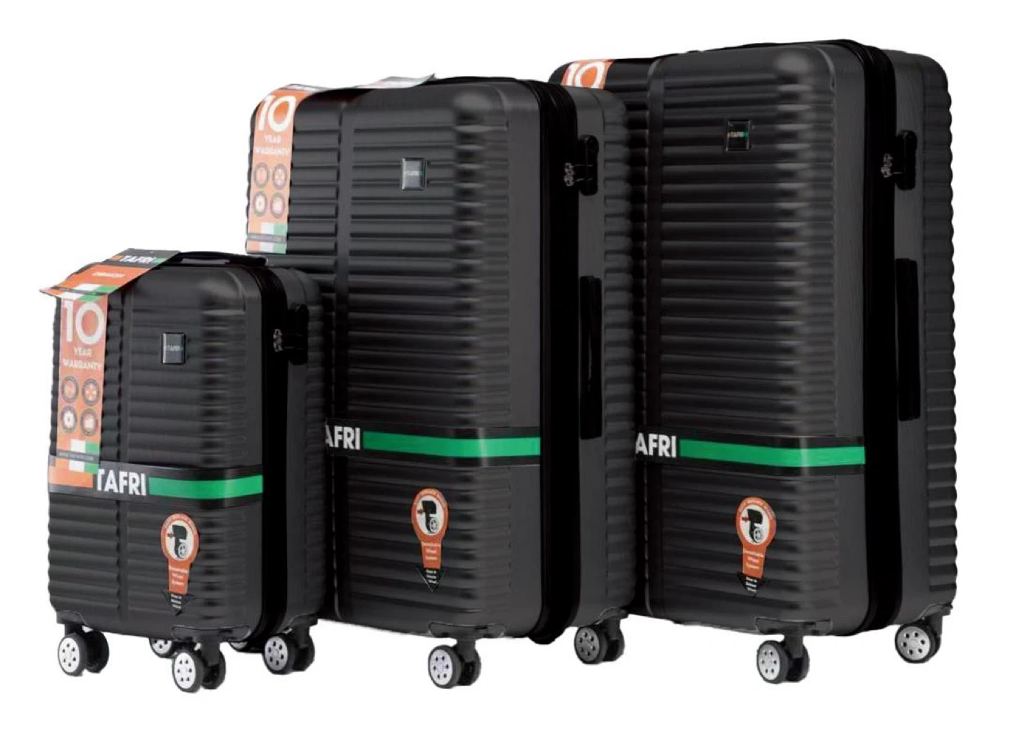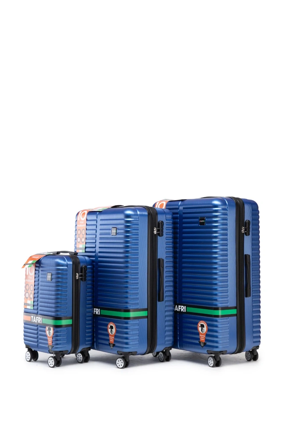 Looking to upgrade your travel gear? I have a Tafri luggage set available. This set includes three pieces in varying sizes, perfect for any trip, big or small. They come in blue, red, and silver. Each suitcase has a 10-year warranty!