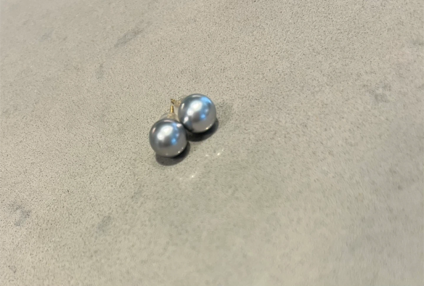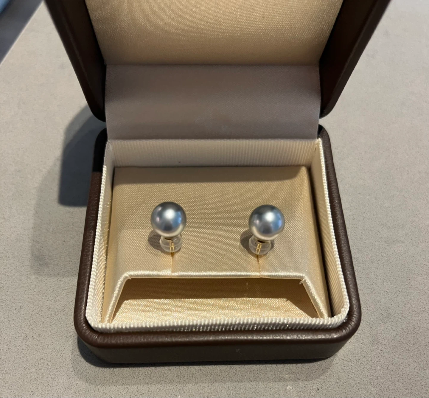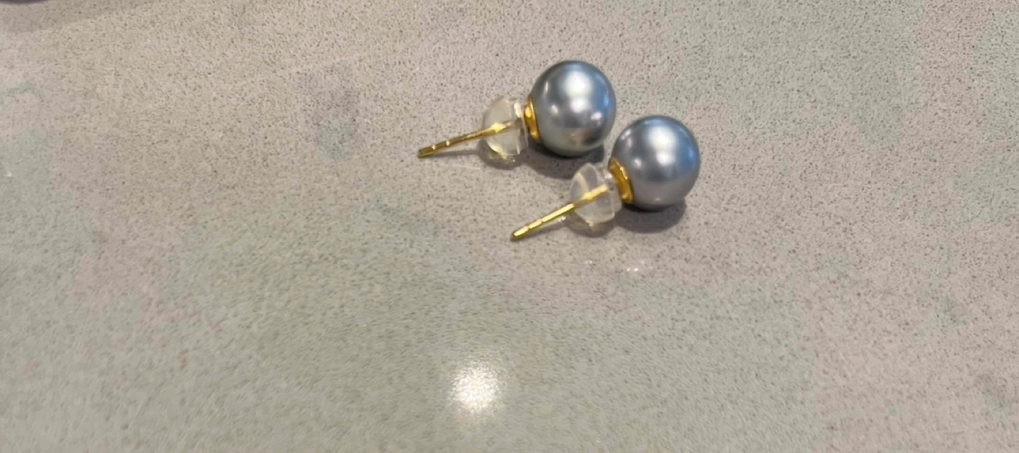 Tahitian grey pearl studs 8-9mm, 18k gold $350