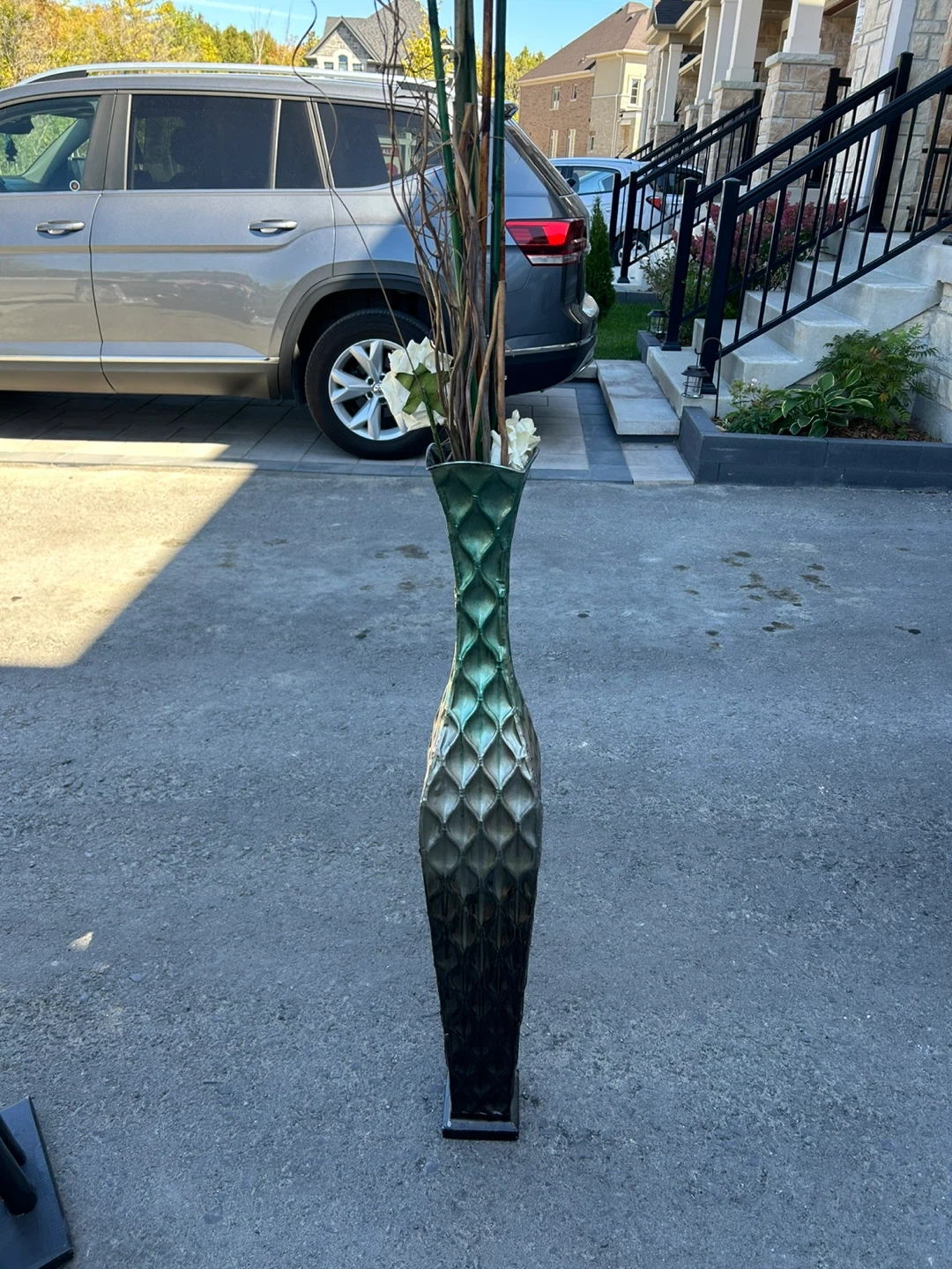 Selling a tall decorative vase. It has a unique textured pattern and a gradient colour from green to black. Perfect for adding a touch of elegance to any room!