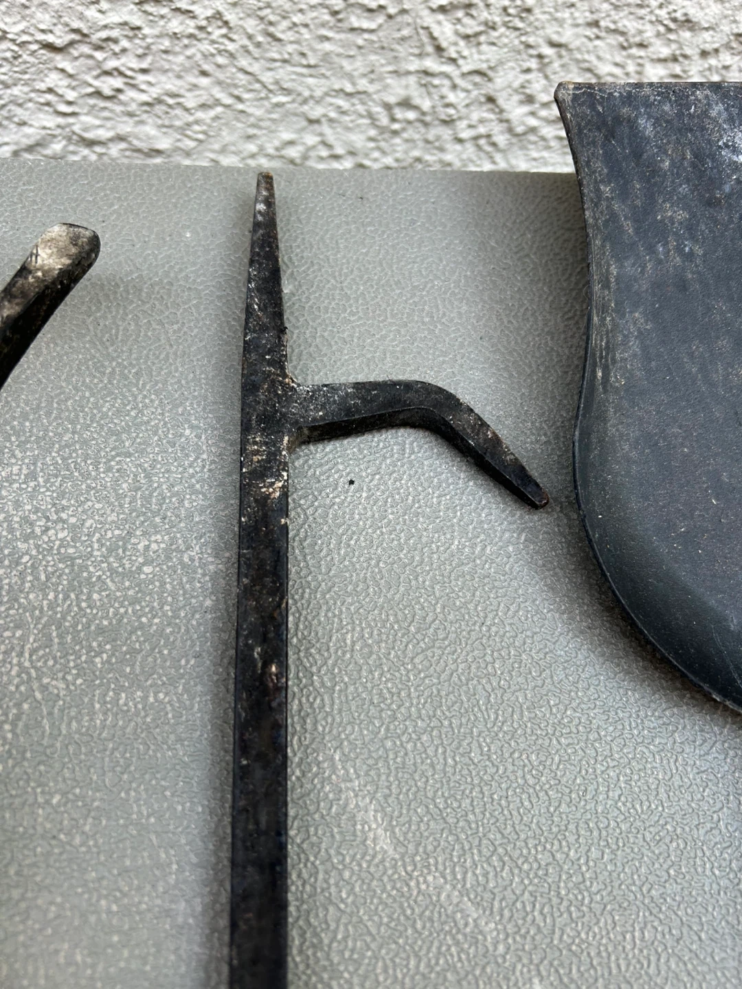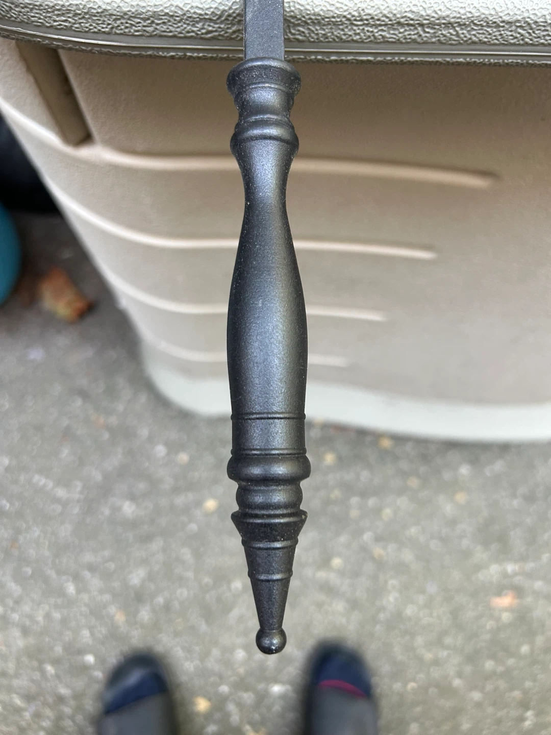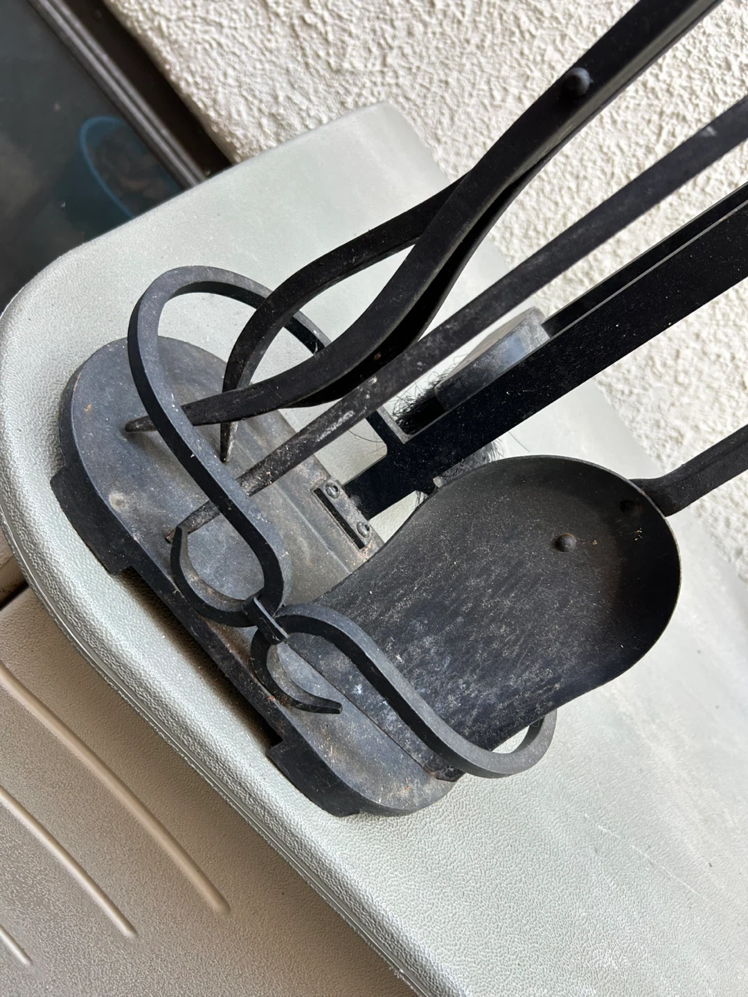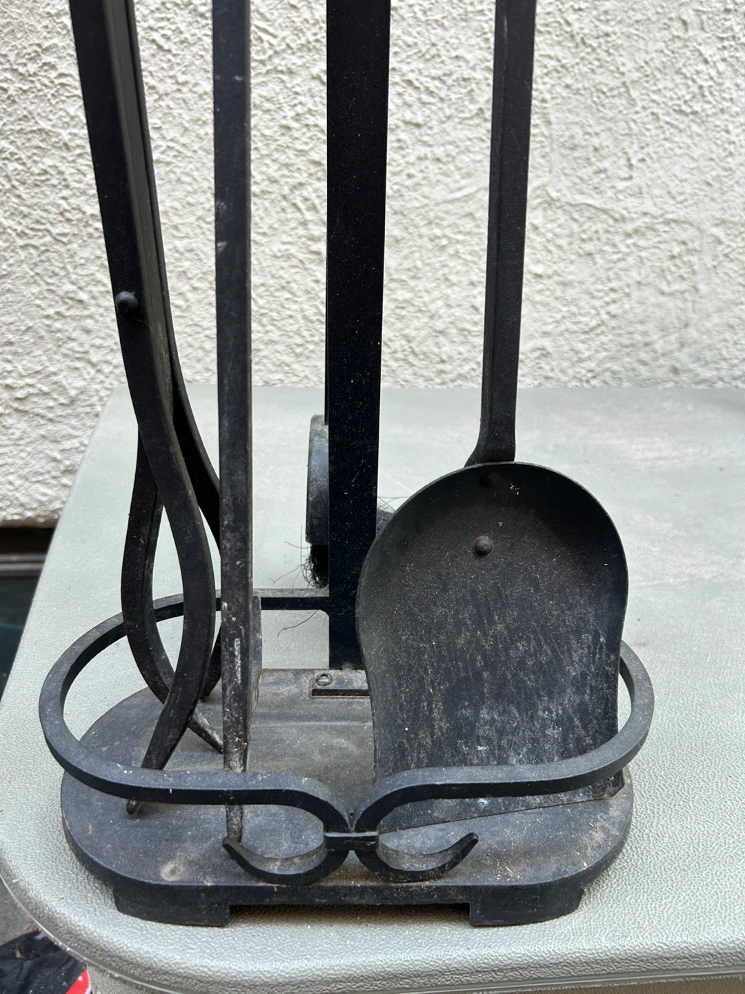 Tall set Black metal fireplace tools poker wood burning fire NOT BRASS 31 inches 5 piece East York Elegant 4 pieces and one stand Black metal well made Modern design with traditional finial Poker Broom Dust pan for ash Wood grabber for logs About 31 inches tall each piece Excellent condition 60.00 Flexible re pickup time & day Elmsdale Road M4J 3M3 Donlands O'Connor East York Don Mills south exit off DVP