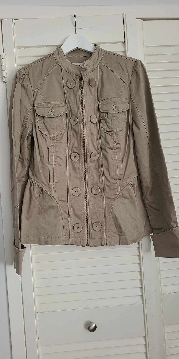 Tan Cropped Jacket size medium Selling a cute tan cropped jacket. It has a unique button design and a flattering fit. Perfect for layering!