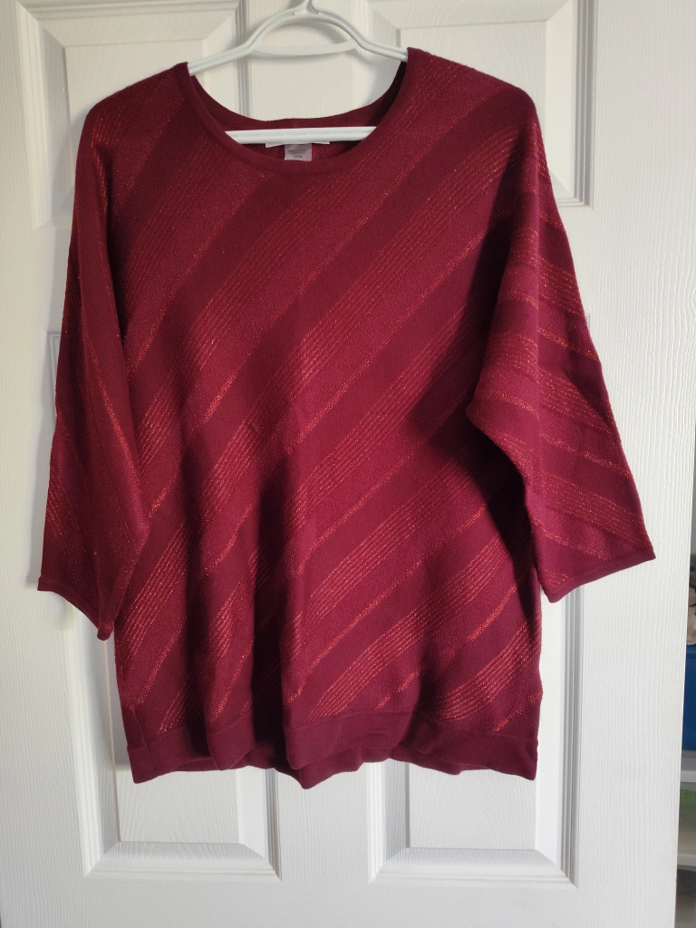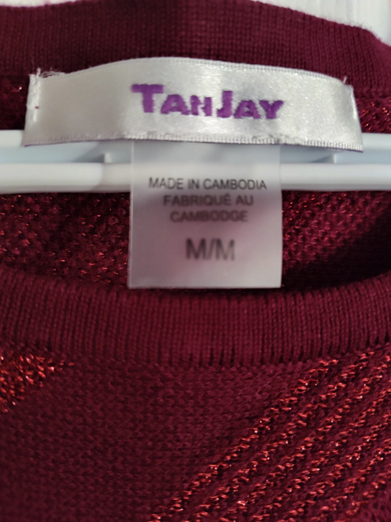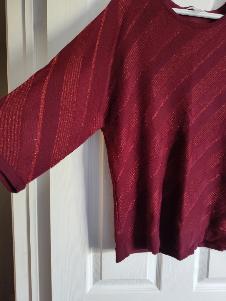 Cozy up in this lovely Tanjay sweater! It's a beautiful burgundy colour with a subtle sparkle. The size is M/M, has batwing sleeves. cash only p/u Streetsville