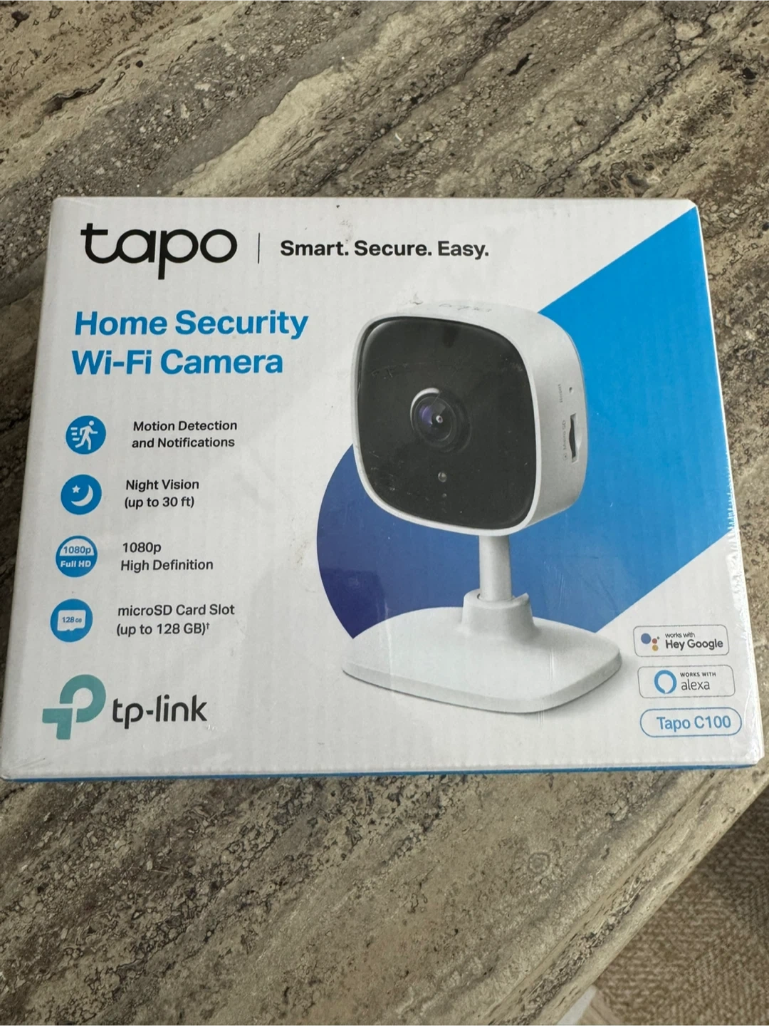 Selling a Tapo C100 Home Security Wi-Fi Camera. It features motion detection, night vision (up to 30 ft), and 1080p full HD resolution. It also has a microSD card slot for local/cloud storage (up to 128 GB) and two-way audio. The camera also has a built-in siren to frighten away unwanted visitors. Get peace of mind with this easy-to-use security camera!