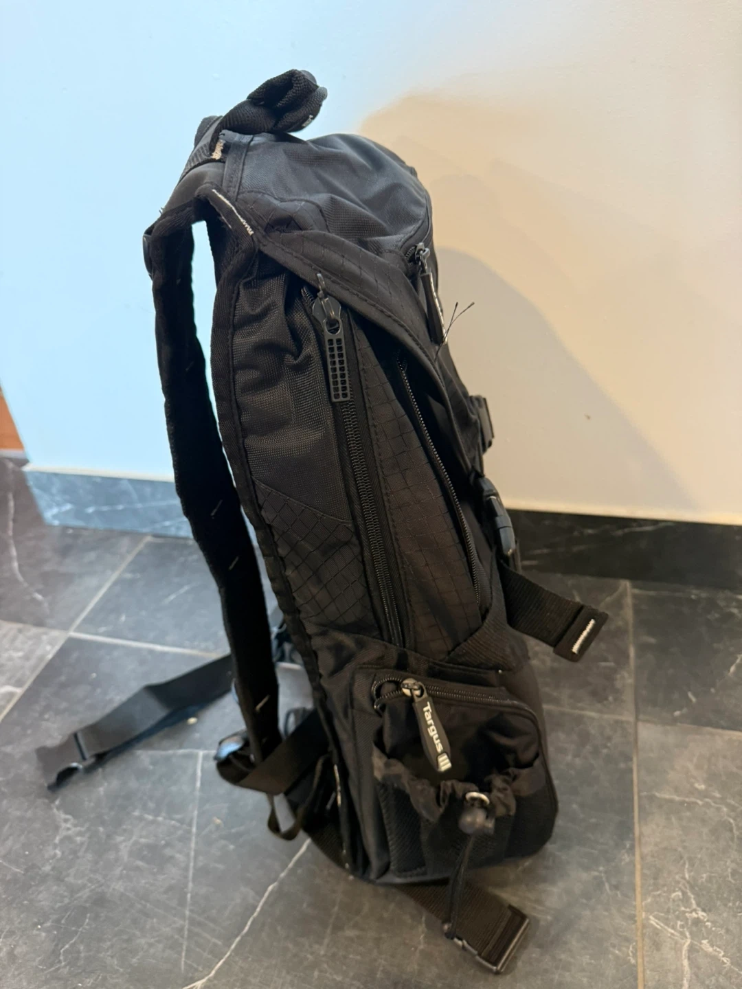 Selling a Targus backpack in black. It's in great shape and ready for a new owner. Perfect for school, work, or travel. Comes with a climate controlled pouch.