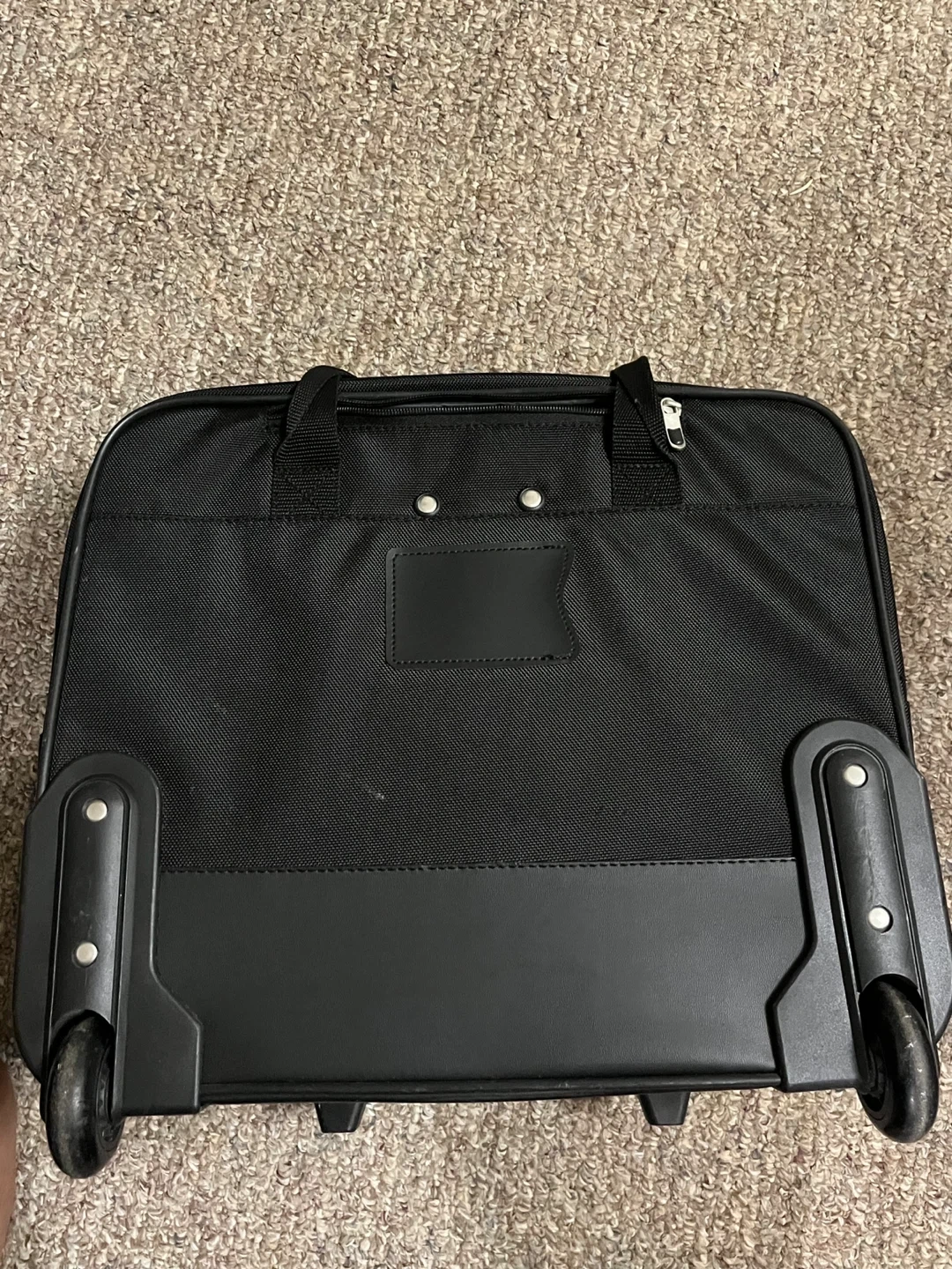 Selling a Targus rolling laptop bag in black. It's in good condition and perfect for carrying your laptop and other essentials. It features a retractable handle and smooth-rolling wheels for easy transport. Great for students or professionals on the go!