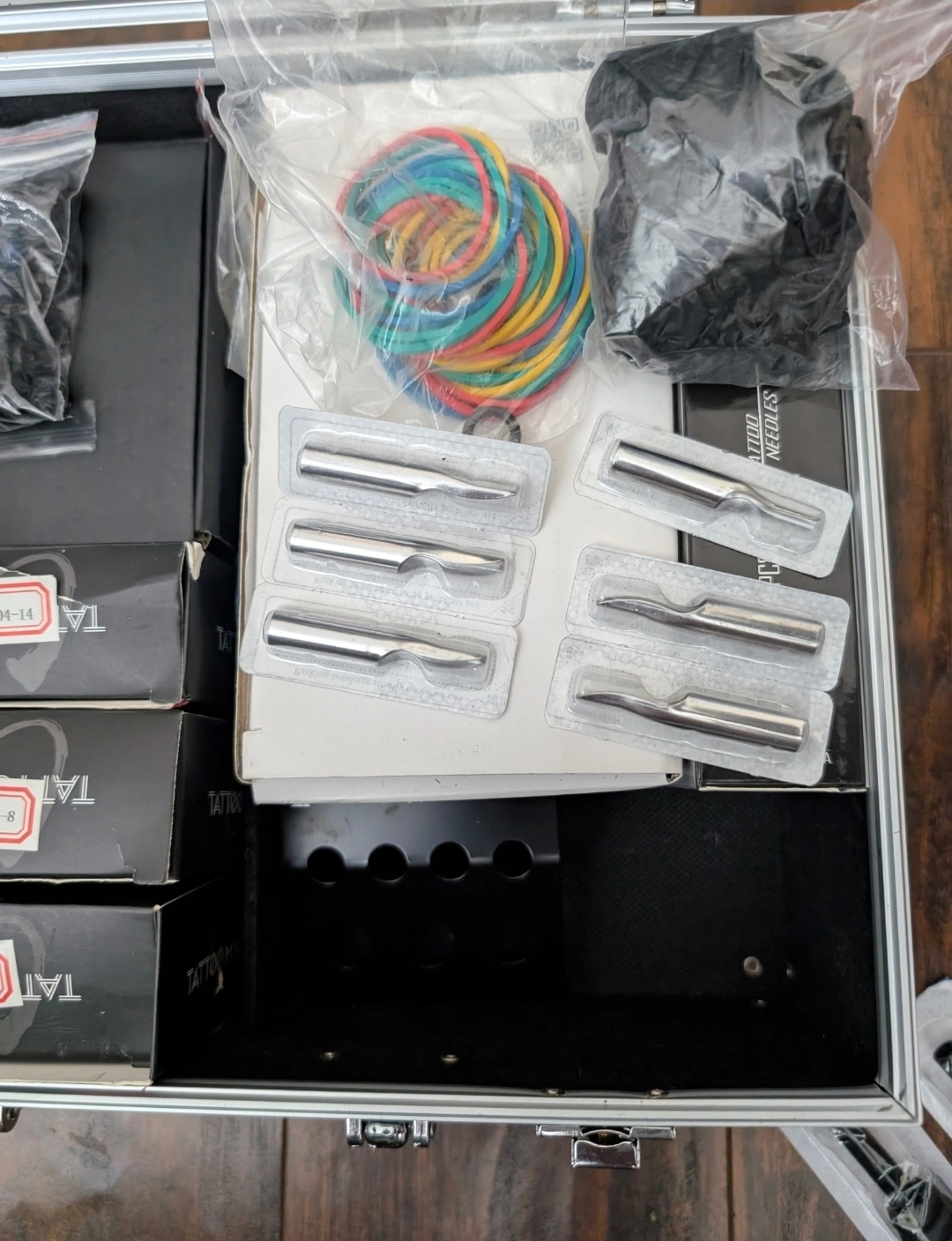 Everything is Brand New other then the Blue coil machine used on practice skins Tattoo Kits Complete Starter Tattoo Kit4 Tattoo Coil Machine Guns 54 Colors Inkswith Carry. ☆Working locking case and everything i the first picture ☆Does not include Black ink ☆Come with Bonus Machine #5 ☆Comes with practice skins ⭐⭐⭐⭐⭐Marketplace Seller ☆Shipping Available at buyers expense ☆Prefer Cash ☆Excepting Etranfer and Paypal ☆Pick up close to mohawk road east and upper wellington,Hamilton Check out my other stuff listings