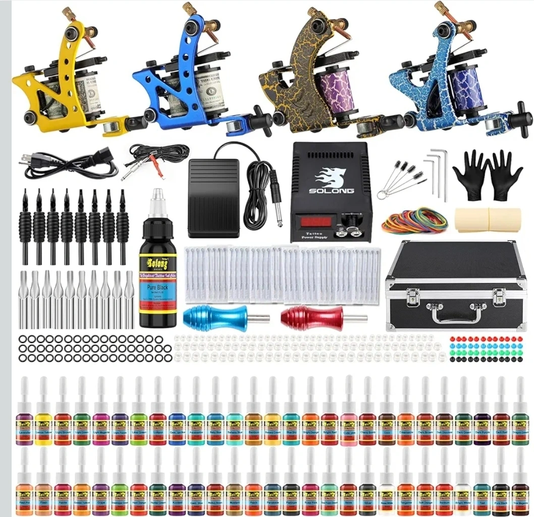 Tattoo Kits Complete Starter Tattoo Coil Machine Guns 54 Colors