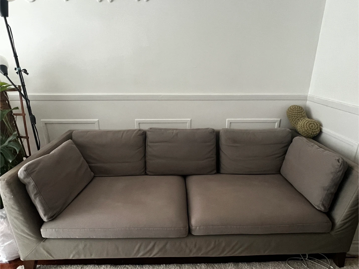 Selling a taupe-coloured modular sectional sofa. It's in great condition and ready for a new home! The cushions are nice and plush, perfect for lounging. It would be a great addition to any living room