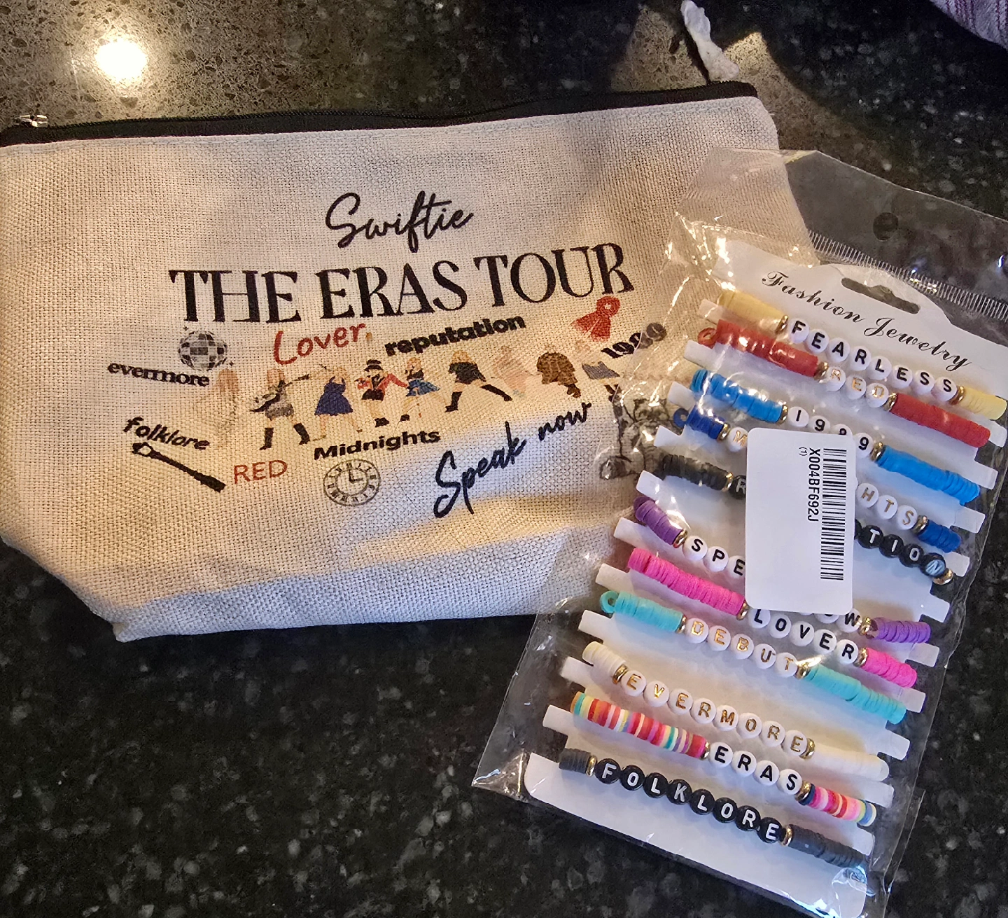Taylor Swift makeup case and friendship bracelets