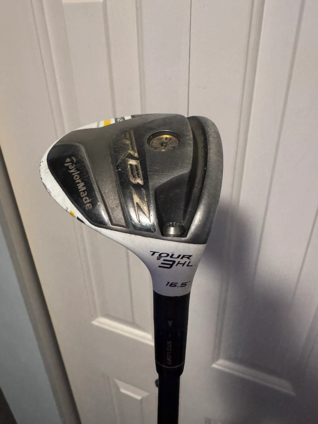 Selling a TaylorMade RBZ Tour 3 HL golf club with a 16.5° loft. It has a RocketFuel by Matrix shaft with 70 grams of weight and R Flex. It's in used condition but still has lots of life left for the course