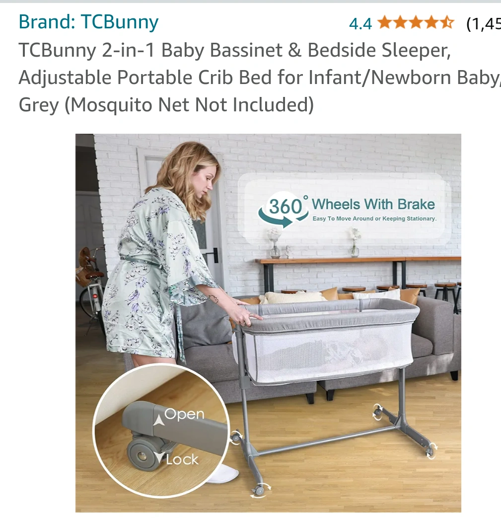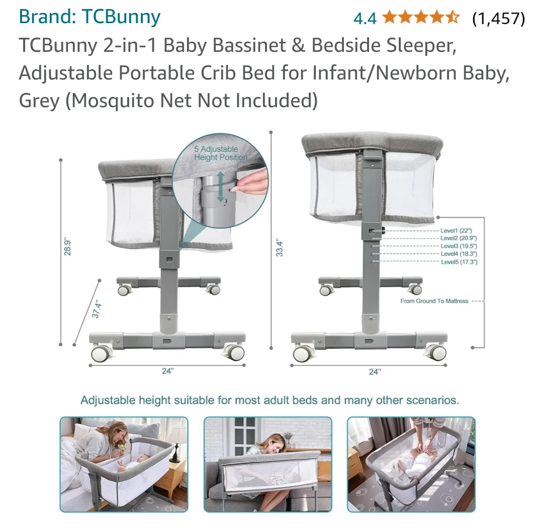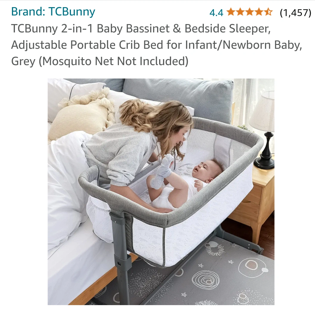 TCBunny 2-in-1 Baby Bassinet & Bedside Sleeper