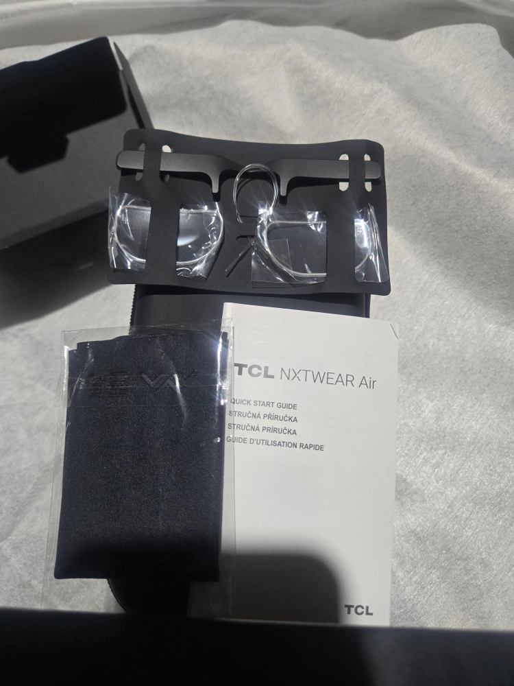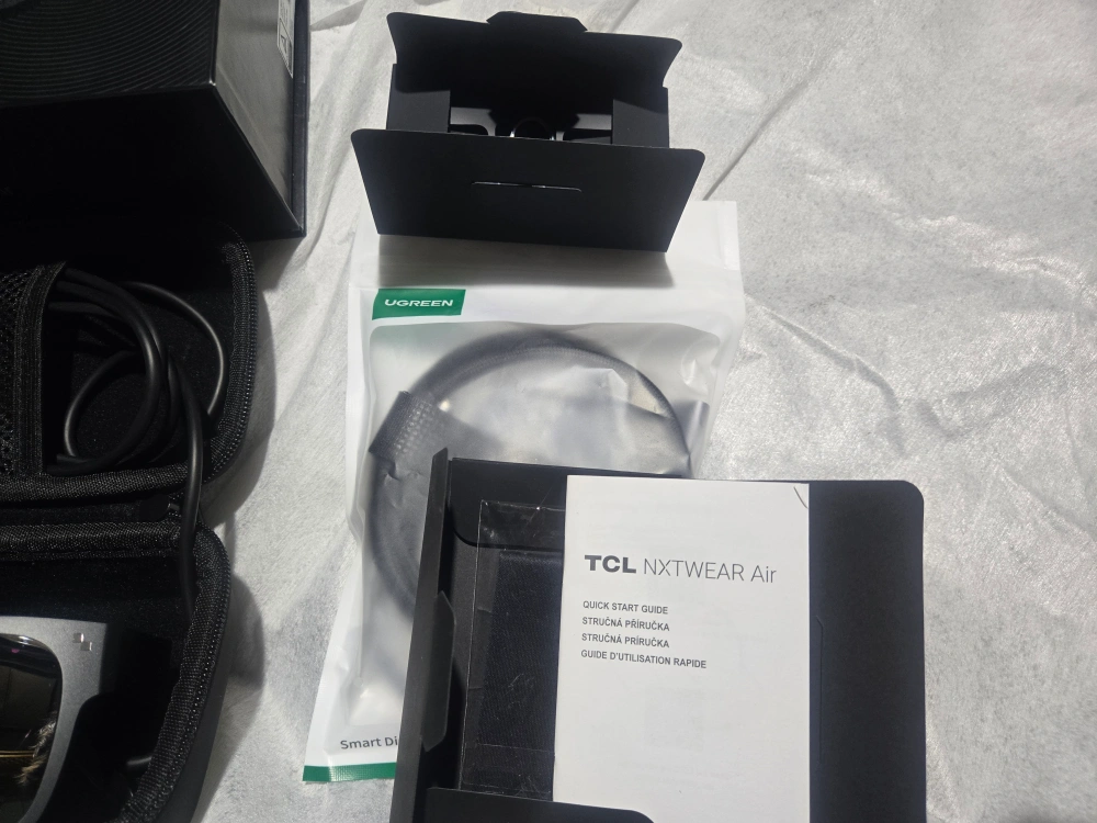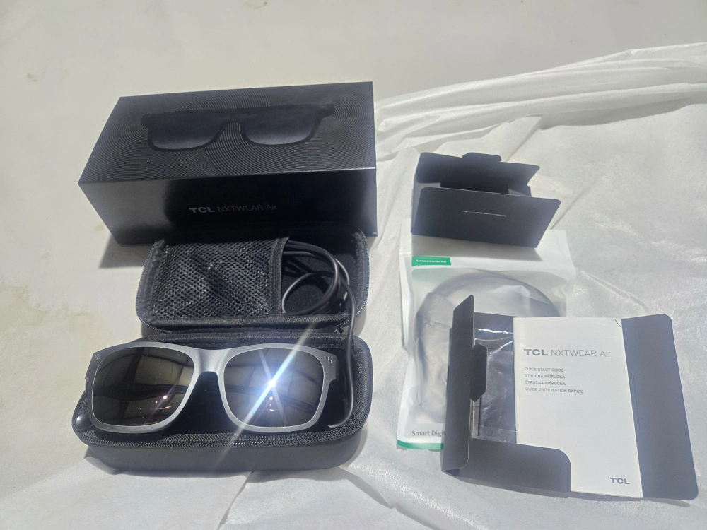 Selling a new set of TCL Nxtwear Air AR glasses! They come with the original box and all included components. These glasses are lightweight and portable, making them perfect for on-the-go entertainment or productivity with their 140" OLED virtual screen. Purchased as a gift, but decided to do something else, opened to test and then put away. for another $30 I have also a high speed usb line and charging hub that will let you charge and use simultaneously, the TCL hubs are usually around $80.