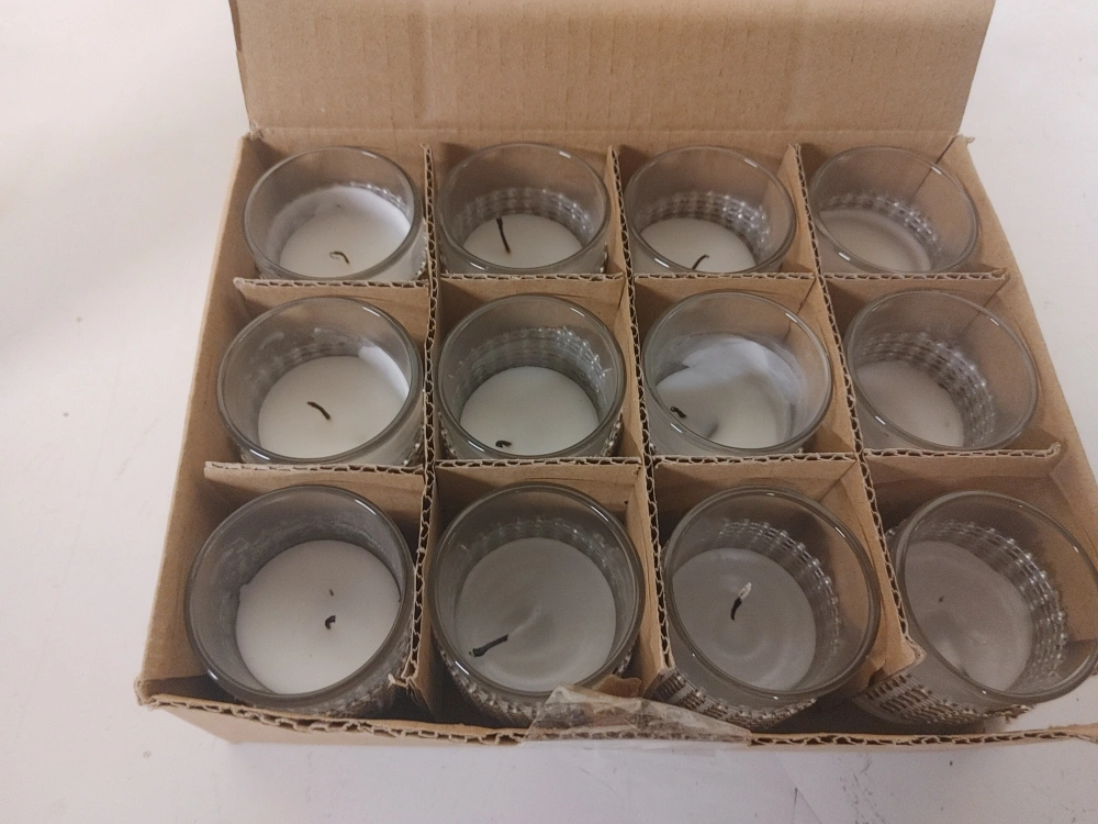 Selling a set of tea light candles that have been partially used. They come in a box for easy storage.