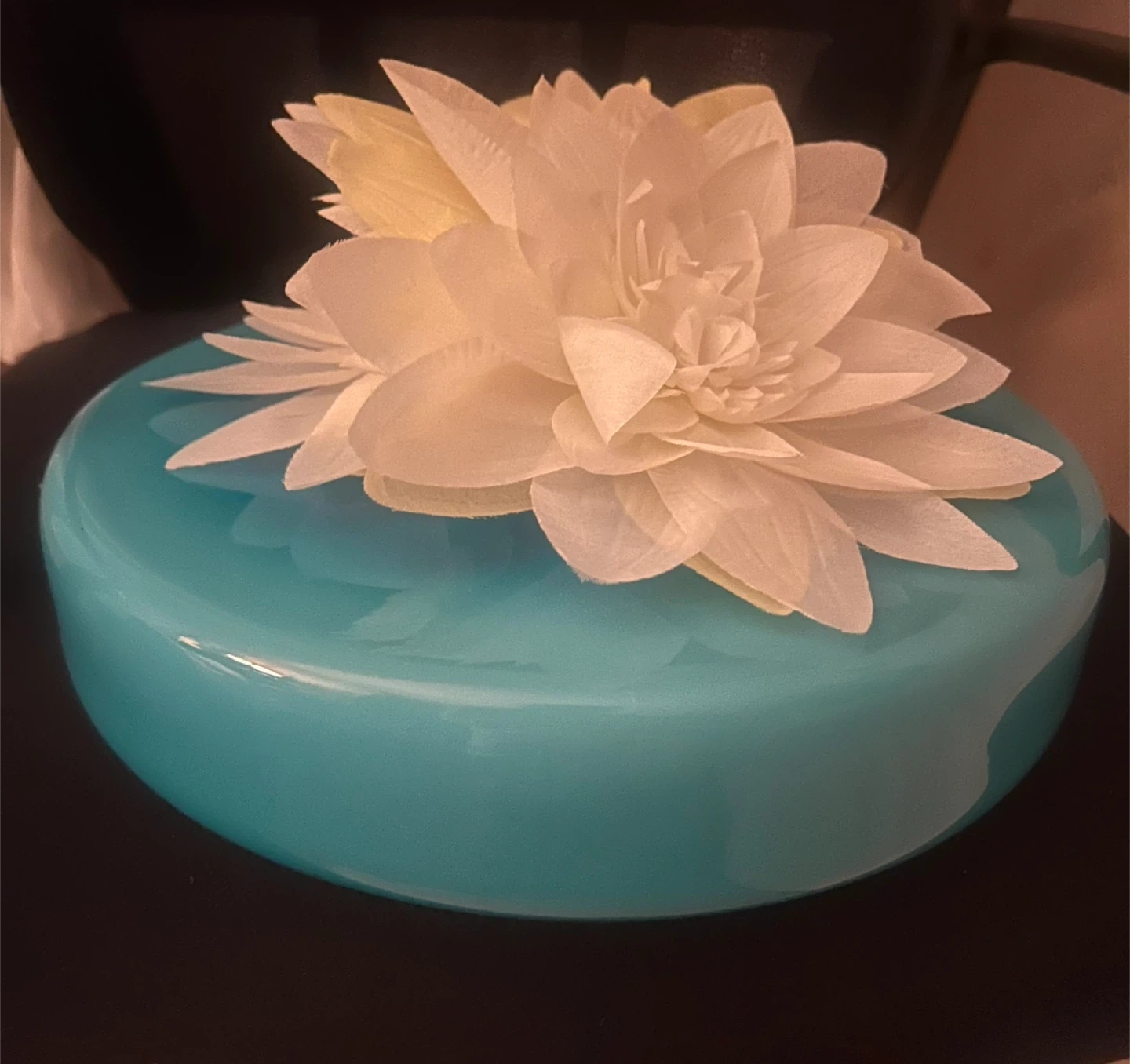 A lovely teal decorative centrepiece with a flower on top. Brand new never used Perfect for adding a touch of elegance to any room
