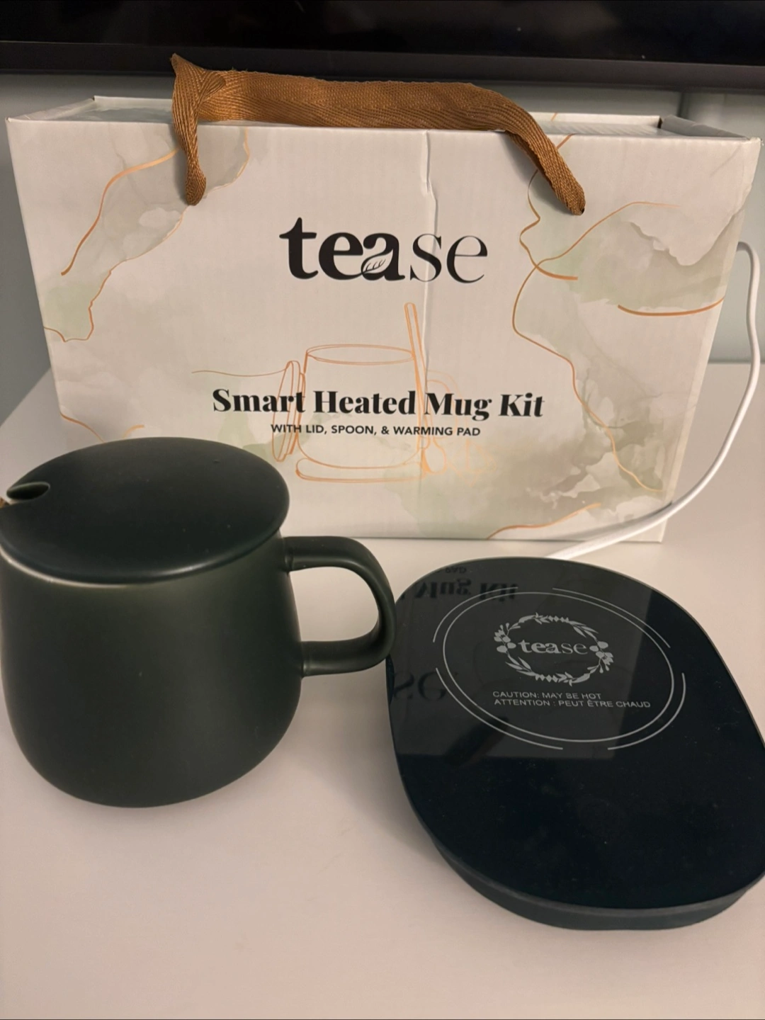 Keep your beverage at the perfect temperature with this Tease Smart Heated Mug Kit! It comes with the mug, lid, spoon, and warming pad. The box is included too. The mug is a sleek, dark green colour and looks great on any desk or table. Great for a Thanksgiving and Year End gift!