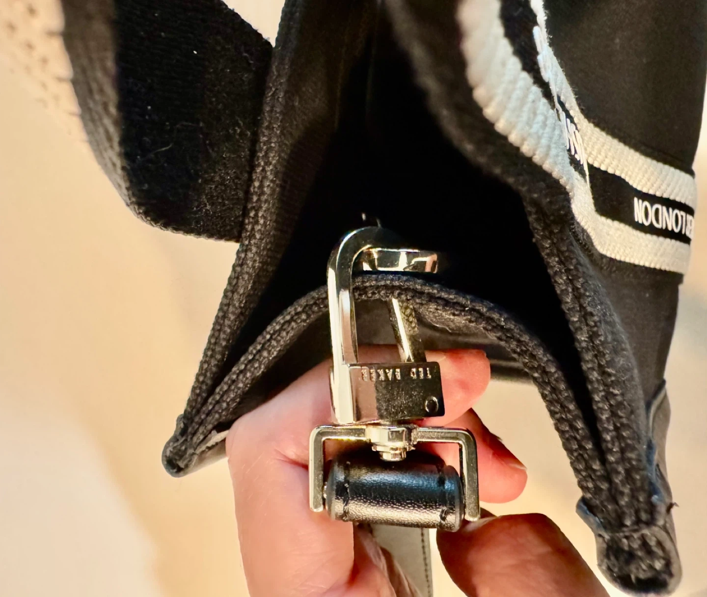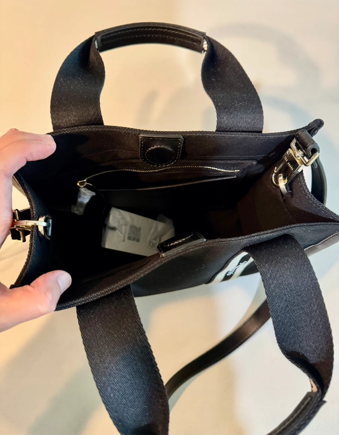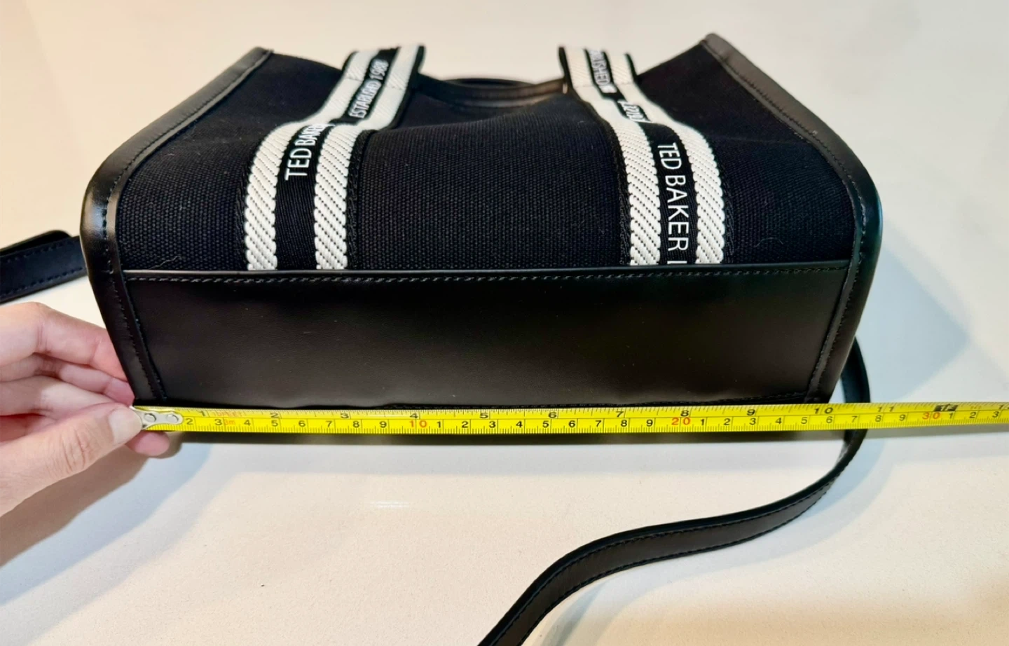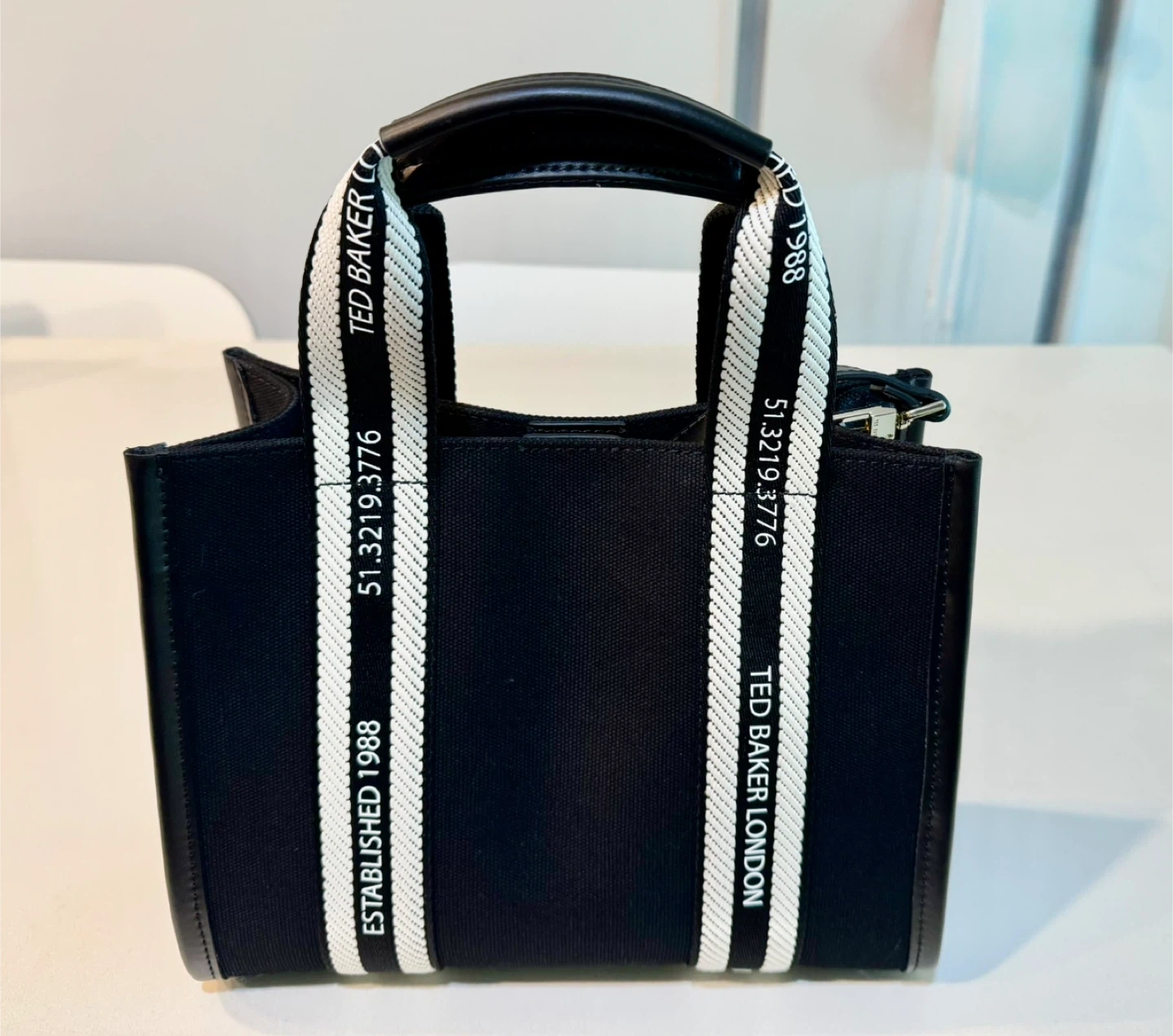 Ted Baker London Black Tote Bag_New With Tag This is a Ted Baker London tote bag in black. It features white stripes on the handles with "TED BAKER LONDON ESTABLISHED 1988 51.3219.3776" printed on them. The bag has a rectangular shape with a top handle and a detachable shoulder strap. It's in great condition and ready for a new home. Retail price : CAD $380.00