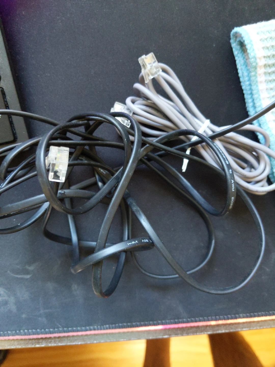 Telephone cord cable in gray and black colour. black color one is lengthier than gray one It's in new condition and ready to use!
