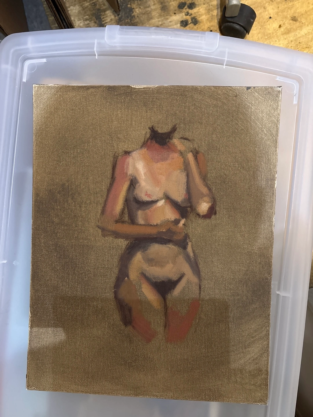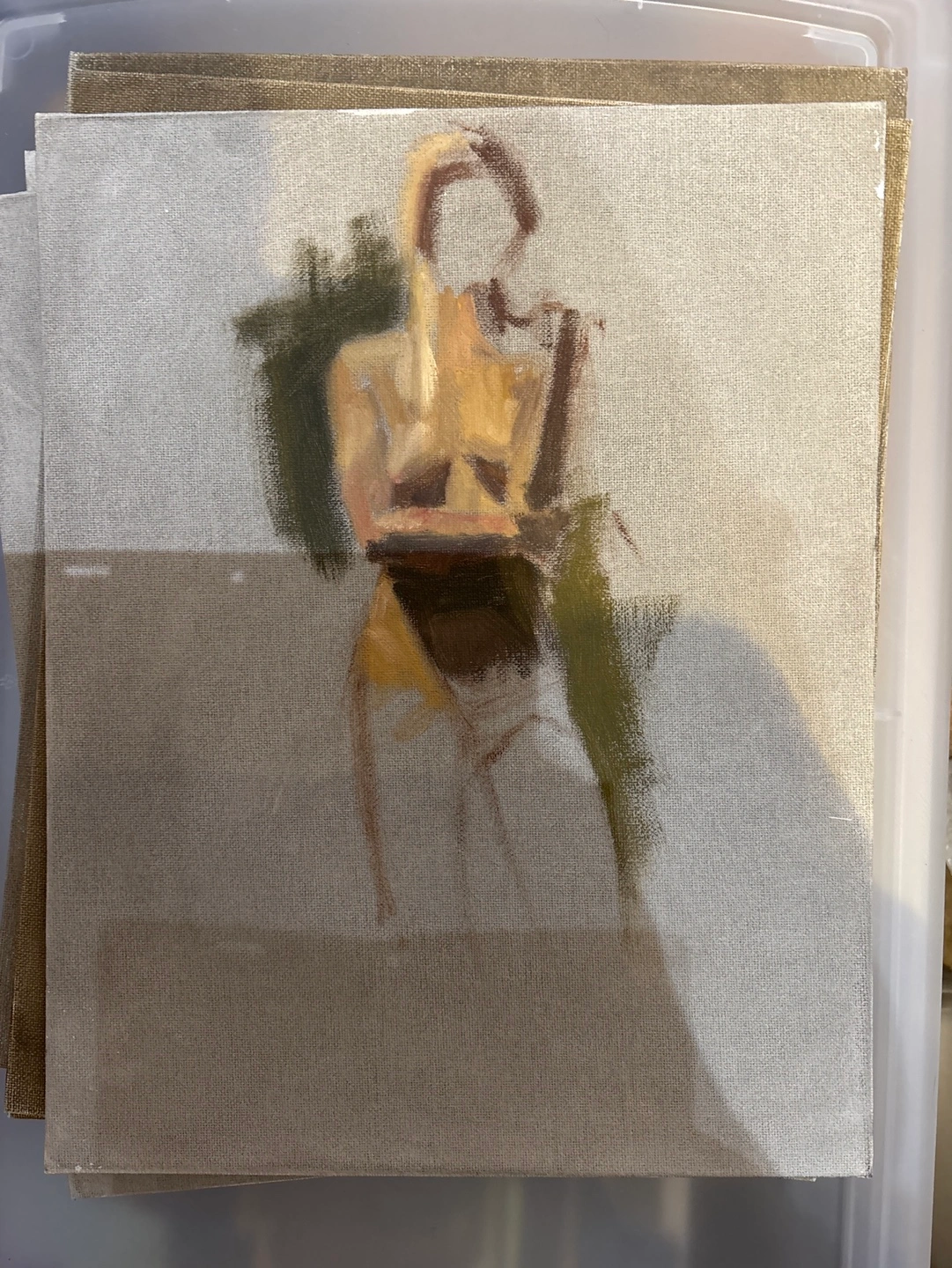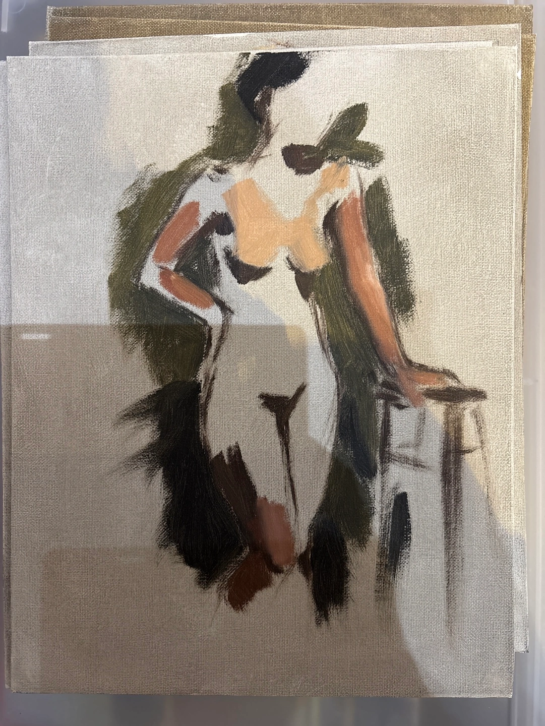 Ten figure studies on canvas from life, quick sketches. Each is a unique work featuring a different pose. 14x11” $40 each or $180 for all together.