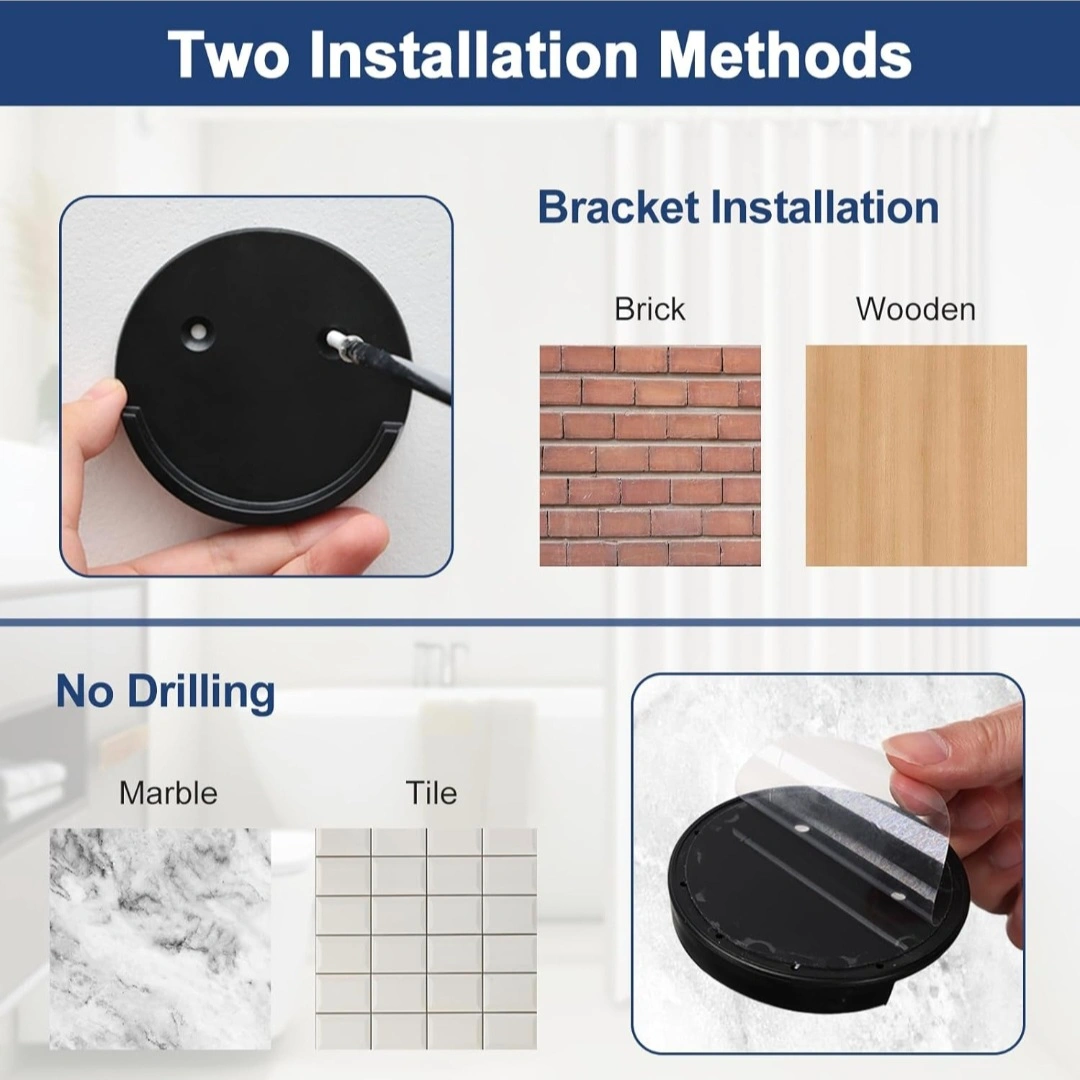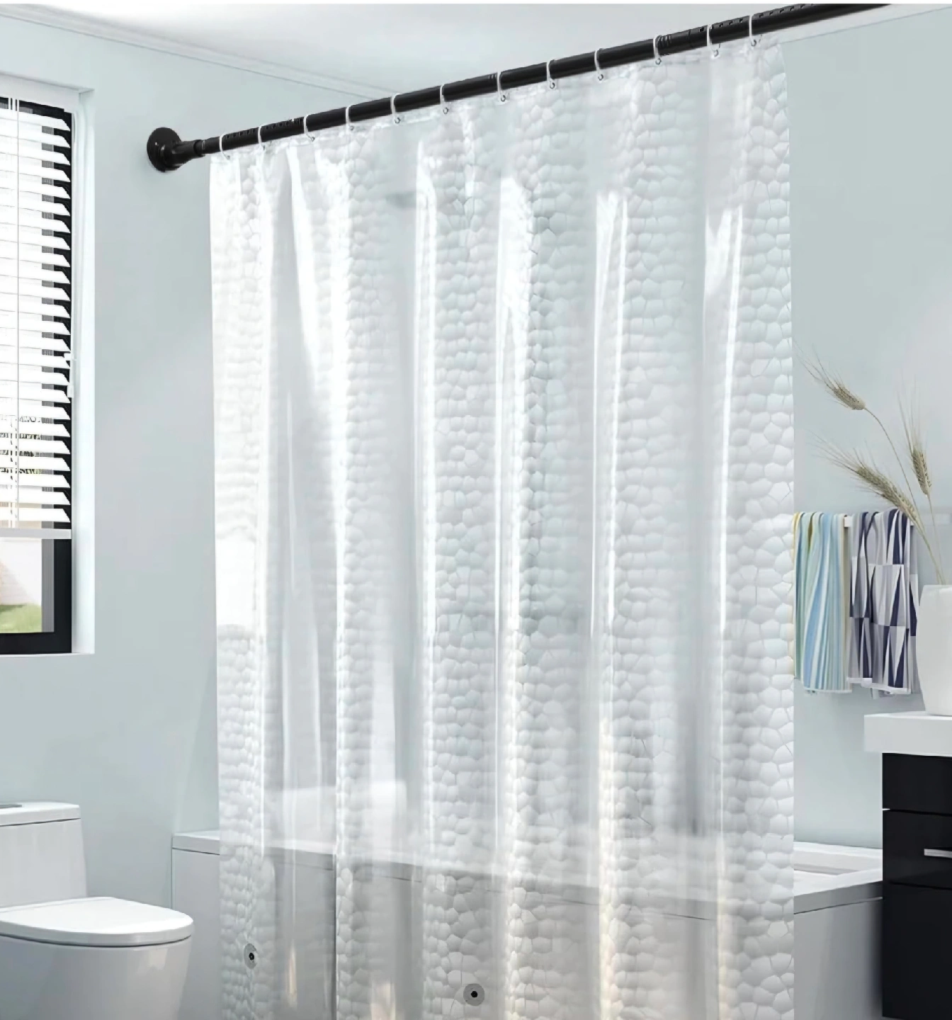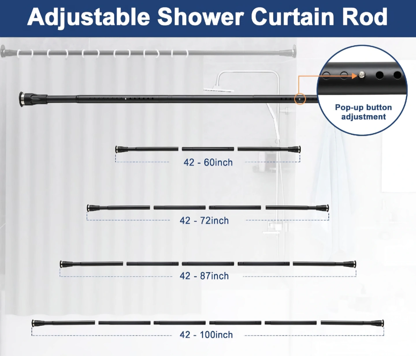 New. Come with adhesive shower rod holders to avoid some potential and unwanted drops. Easy to install and adjust to the length you need. 42"-100"