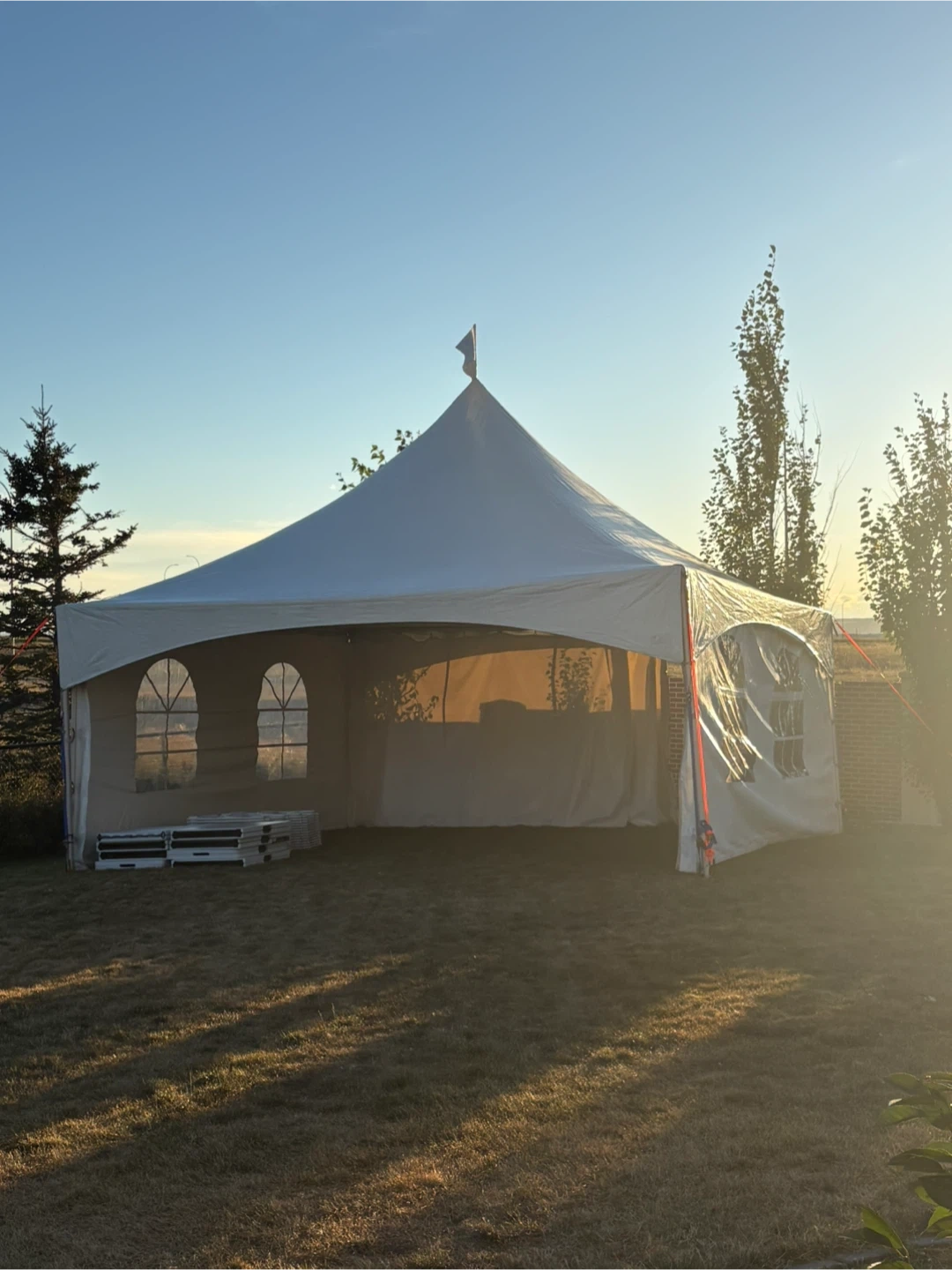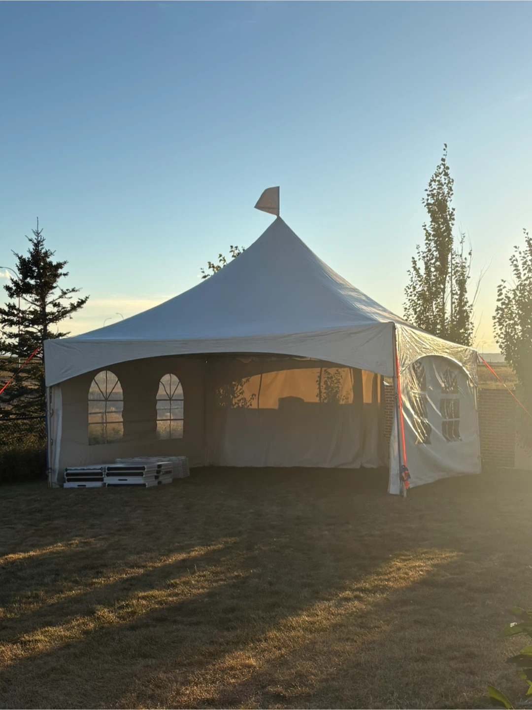 Tents, tables, and chairs for rent. The tent is 20x20ft message for the price. The tables are for $7. The chairs are for $1. Message for booking. The delivery is available.