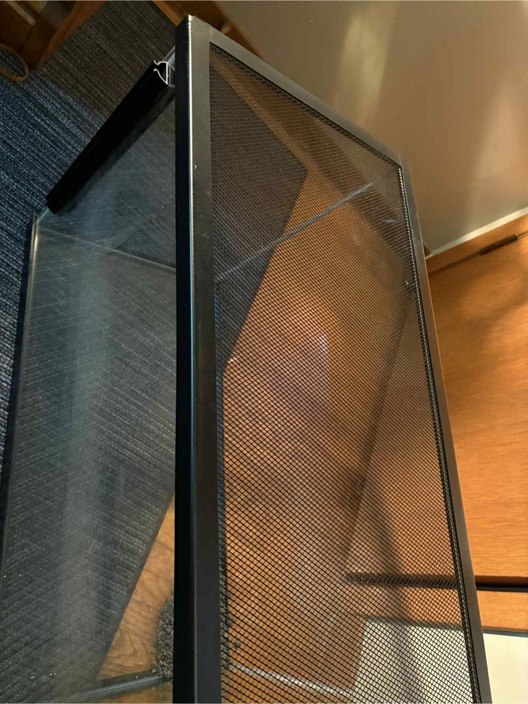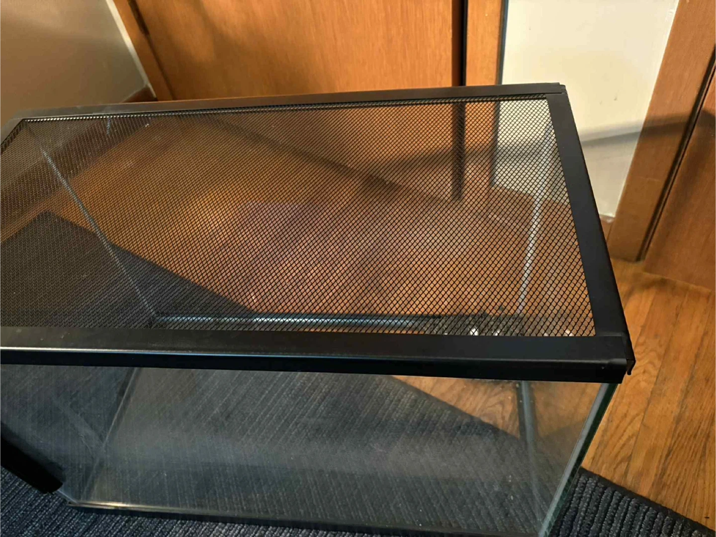 Holds water has a screen lid and regular lid with light great for fish or reptiles small animals I have a water bottle for hamsters to go with it as well as used open paper bedding