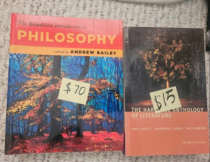 The Harbrace anthology of literature -$15 The Broadview introduction to Philosophy- $70 Both in good condition