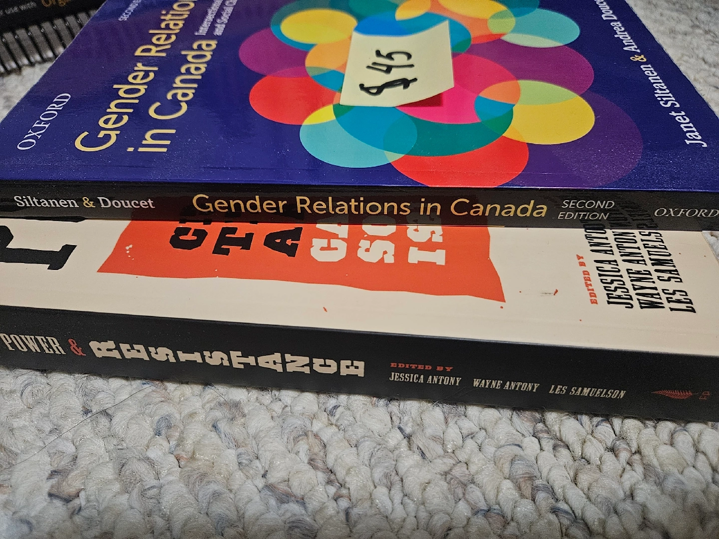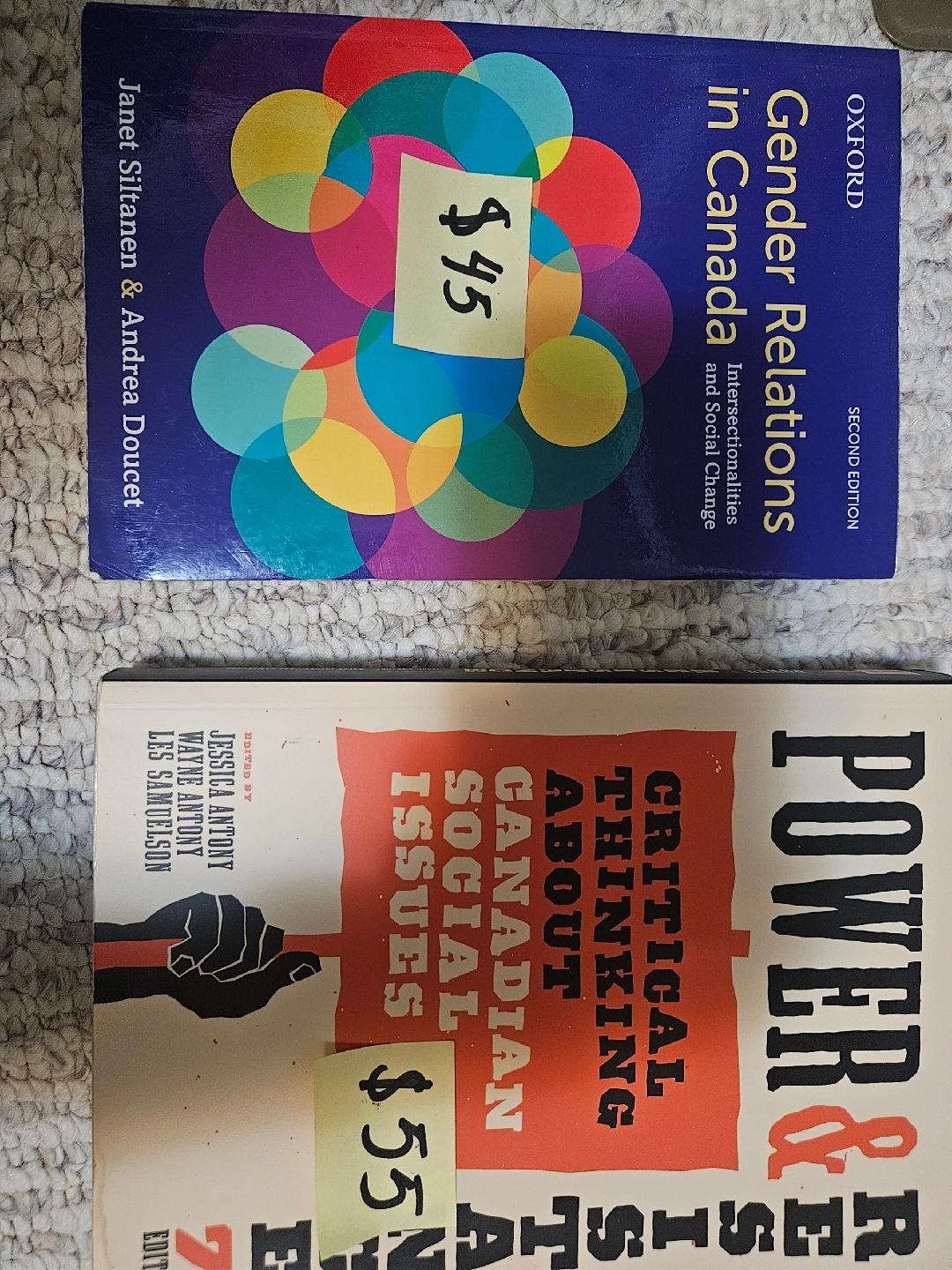 Gender Relations in Canada (Second Edition) by Janet Siltanen & Andrea Doucet-$43 Power & Resistance: Critical Thinking About Canadian Social Issues edited by Jessica Antony, Wayne Antony, and Les Samuelson -$55