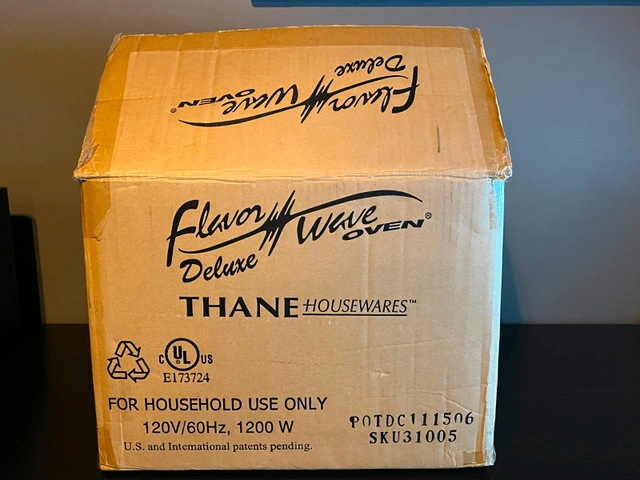 New - never used Thane Flavor Wave Deluxe Oven Convection Cooker MHO-1200. Still in original packaging. Offers 3-way cooking with its infrared oven technology. This electric-powered convection cooker is energy-efficient and compliant with Energy Star standards. Includes components such as a rack, glass plate, lid, flavoring, and base. Asking $55. Serious inquiries only.