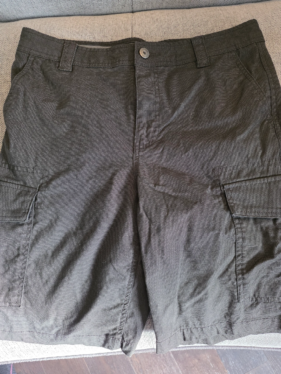 These are a pair of grey cargo shorts from The B Clothing Co. size 32. like new. Perfect for casual wear or outdoor activities!