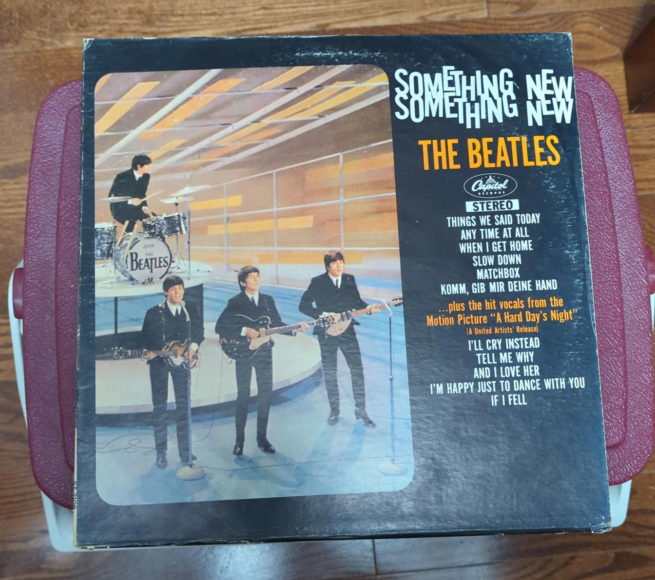 Selling a vintage vinyl record by The Beatles, titled 'Something New'! This is a Capitol Records stereo pressing, featuring classic tracks like 'Things We Said Today,' 'Any Time At All,' and 'I'll Cry Instead' from the movie 'A Hard Day's Night'. A great addition to any Beatles collection!