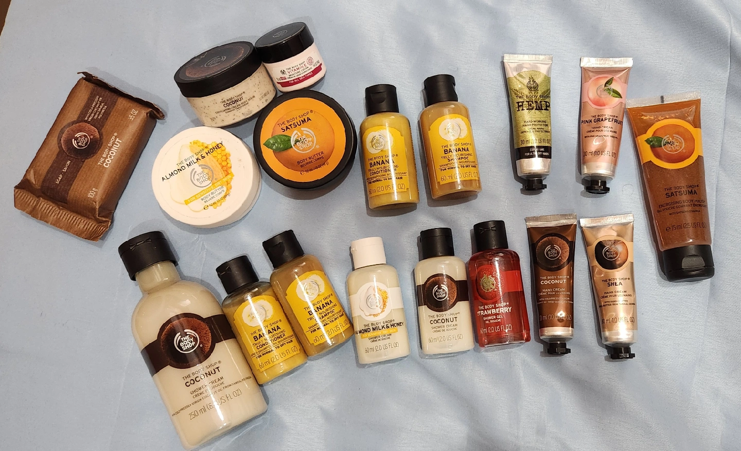 Clearing out some lovely The Body Shop items! There's a variety of scents and products including coconut, shea, almond milk & honey, banana, satsuma, and more! Perfect for trying out different scents or travel sizes