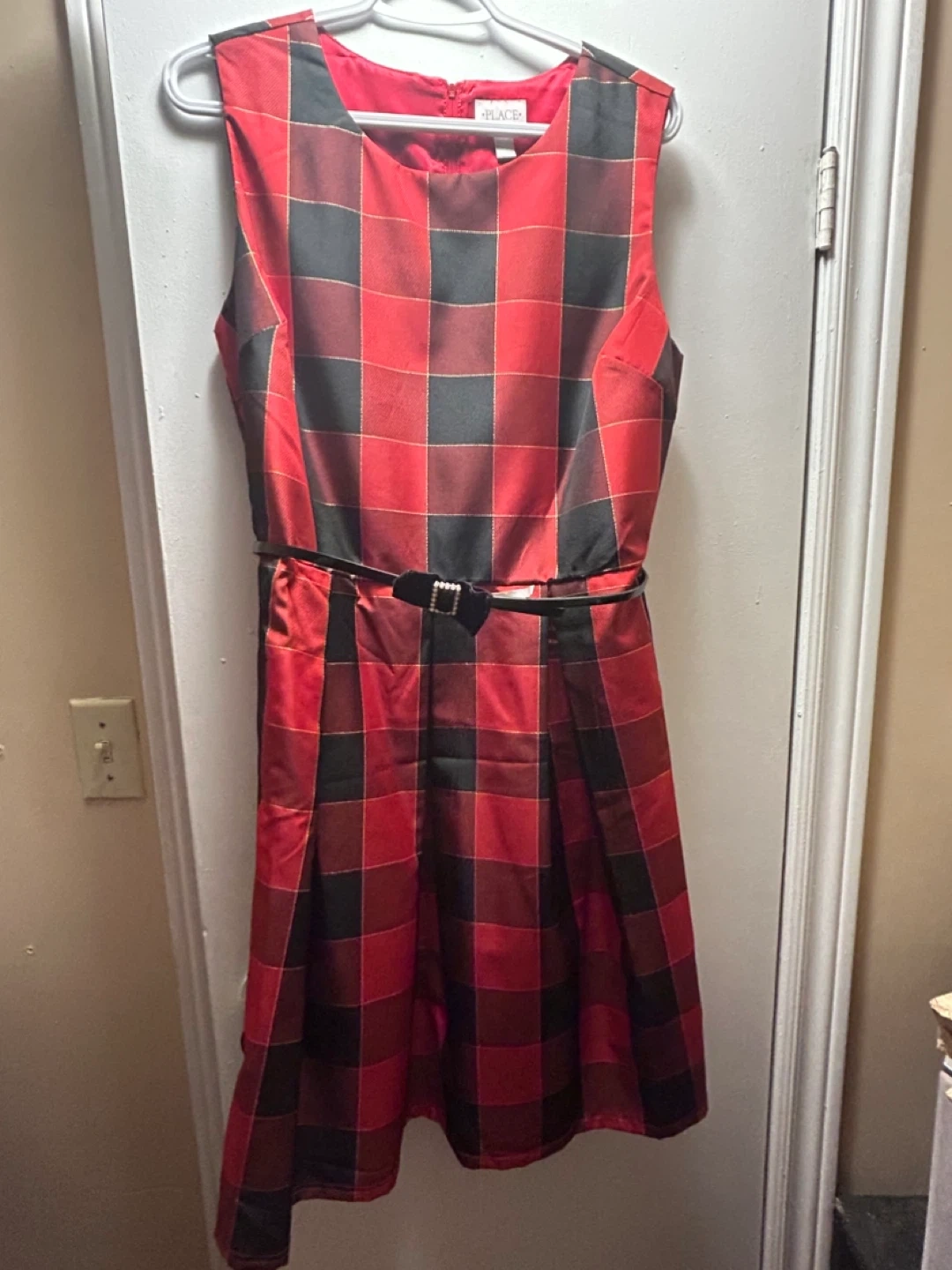 Cute red and black plaid dress from The Children's Place. It has a black belt detail and is in great condition! Size Medium.