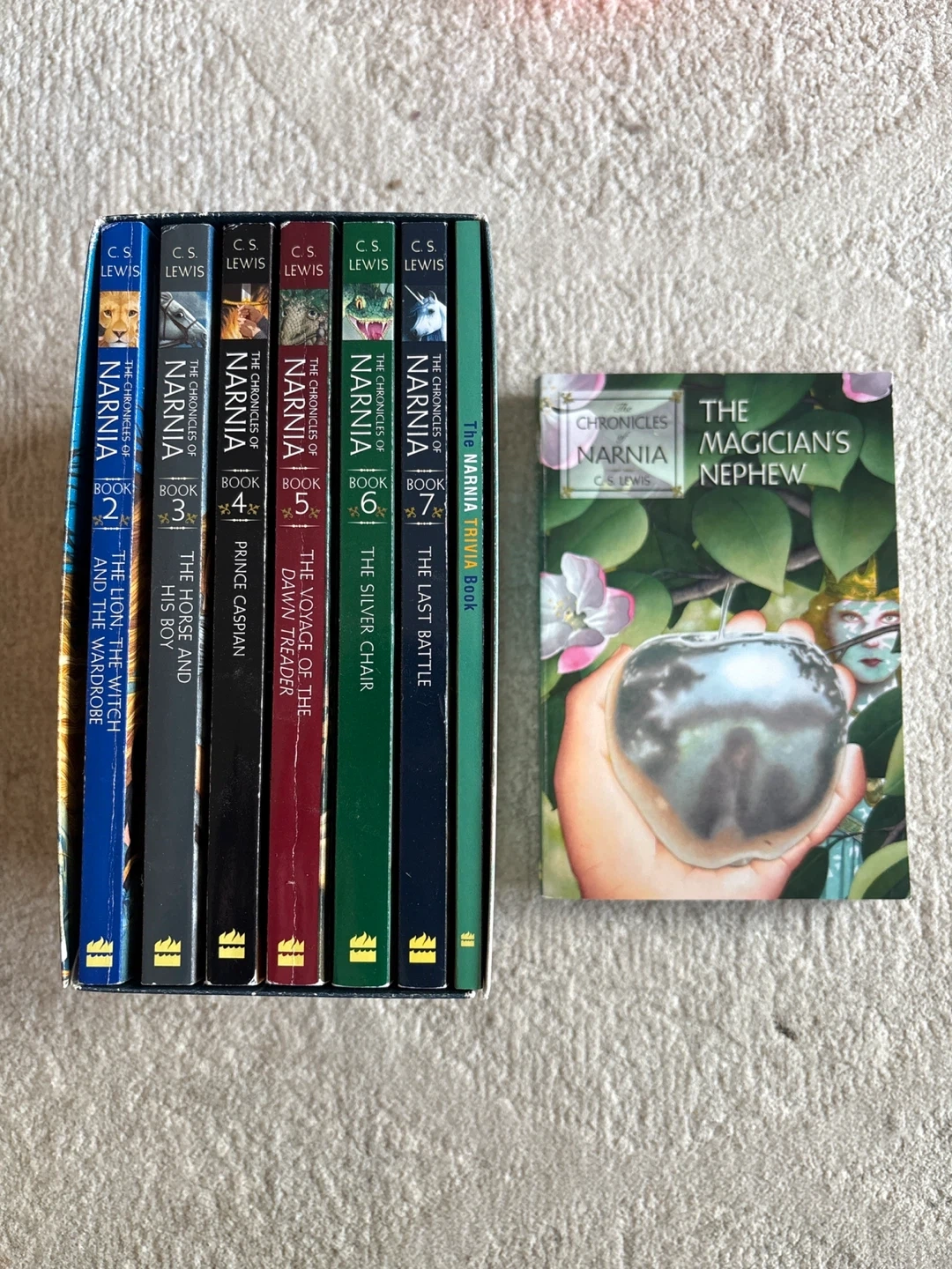 Selling The Chronicles of Narnia book set by C.S. Lewis! Includes books, plus The Magician's Nephew (The Narnia Trivia Book). A great addition to any bookshelf!