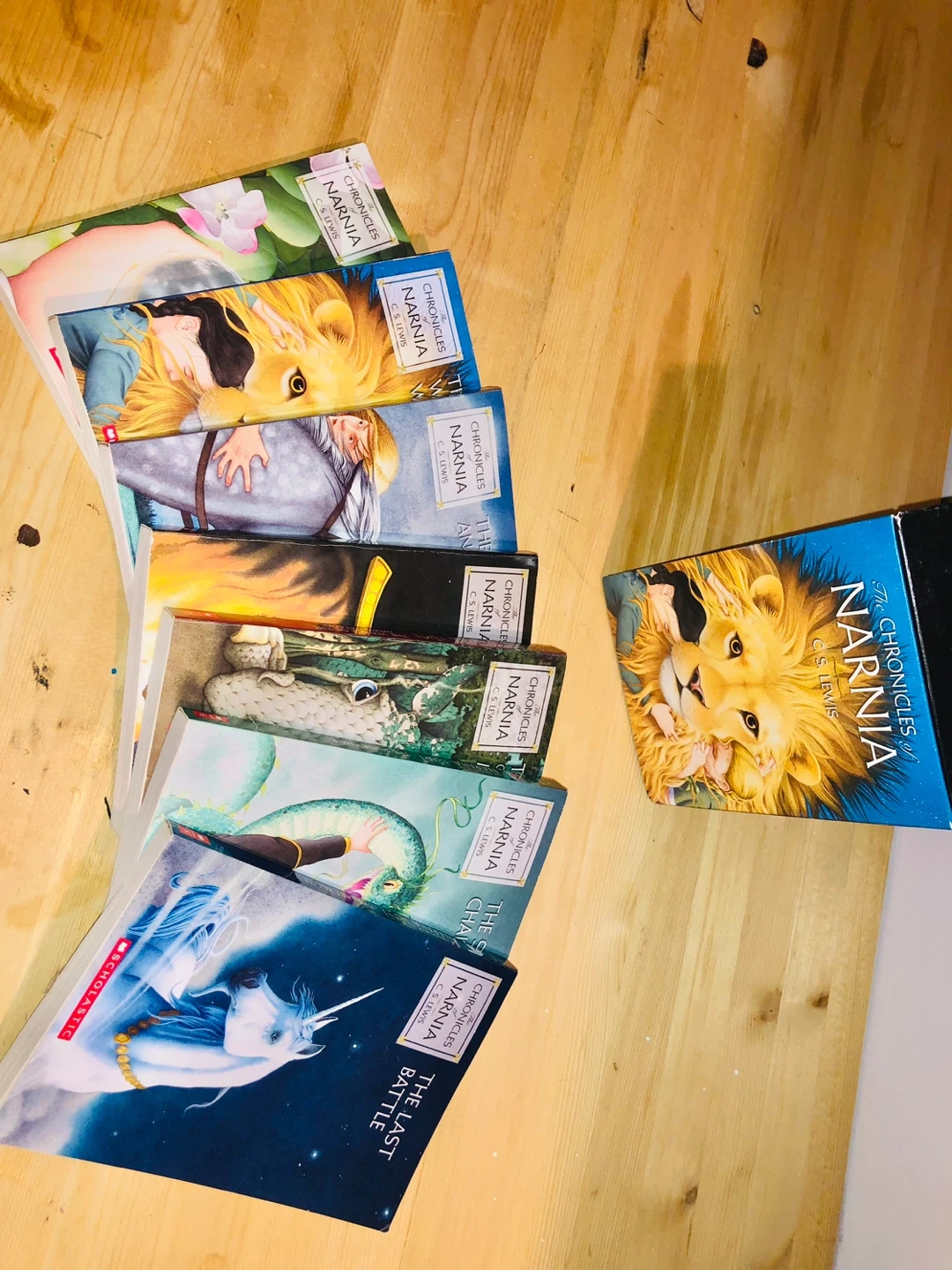 Selling a complete set of The Chronicles of Narnia by C.S. Lewis! This set includes all seven books in the series. Perfect for young readers and fans of fantasy! (No writing on the inside - glossy covers)