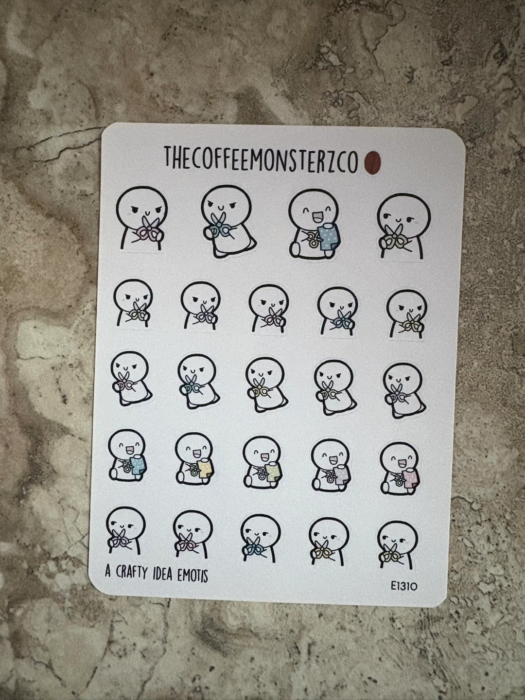 The Coffee Monsterz Co sticker sheet A Crafty Idea Emotis 1 full sheet Matte Paper Sheet measures approximately 8.8 cm x 11.6 cm (3.5 in x 4.6 in) Great for planners and journals! Cash preferred or etransfer accepted from verified users Shipping options available Porch pick locations: Markham - Markham Rd & 16th Ave Oshawa - Wilson Rd & Adelaide Ave Pls feel free to ask me any questions