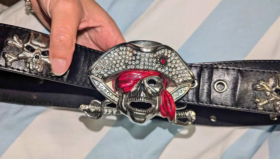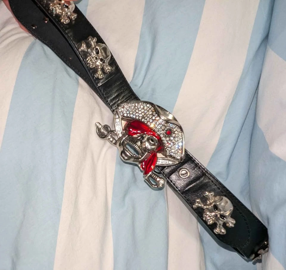 The coolest Pirate Rhinestone Belt Buckle & Leather Belt