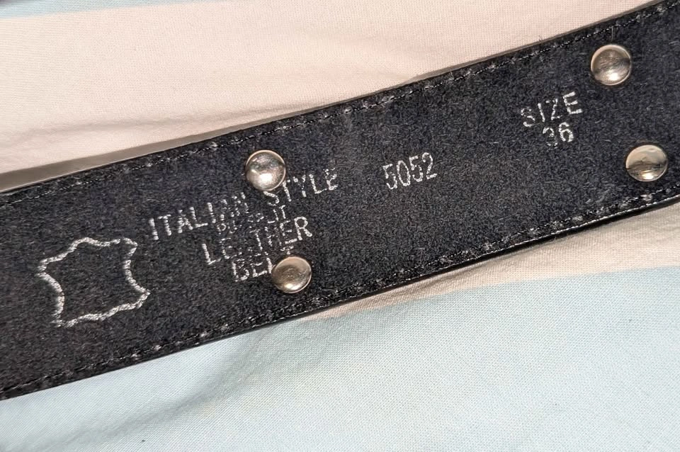 Unisex Belt w/buckle Authentic Italian style leather belt, marked size 36 (adjustable) Buckle is removable, but it matches perfectly so no need :) Some wear on belt consistent with vintage age. One small rhinestone missing in top corner.