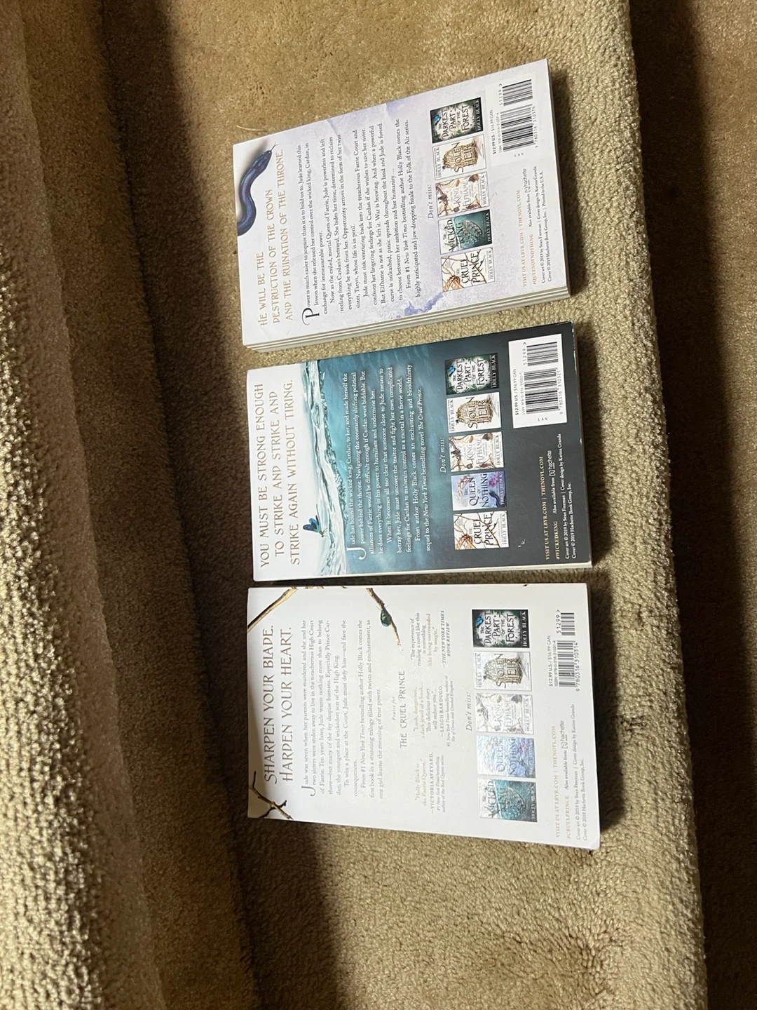 Selling the complete "the cruel prince" series by Holly Black! Includes: - The Cruel Prince - The Wicked King - The Queen of Nothing All books are in great condition and ready for a new reader to enjoy!