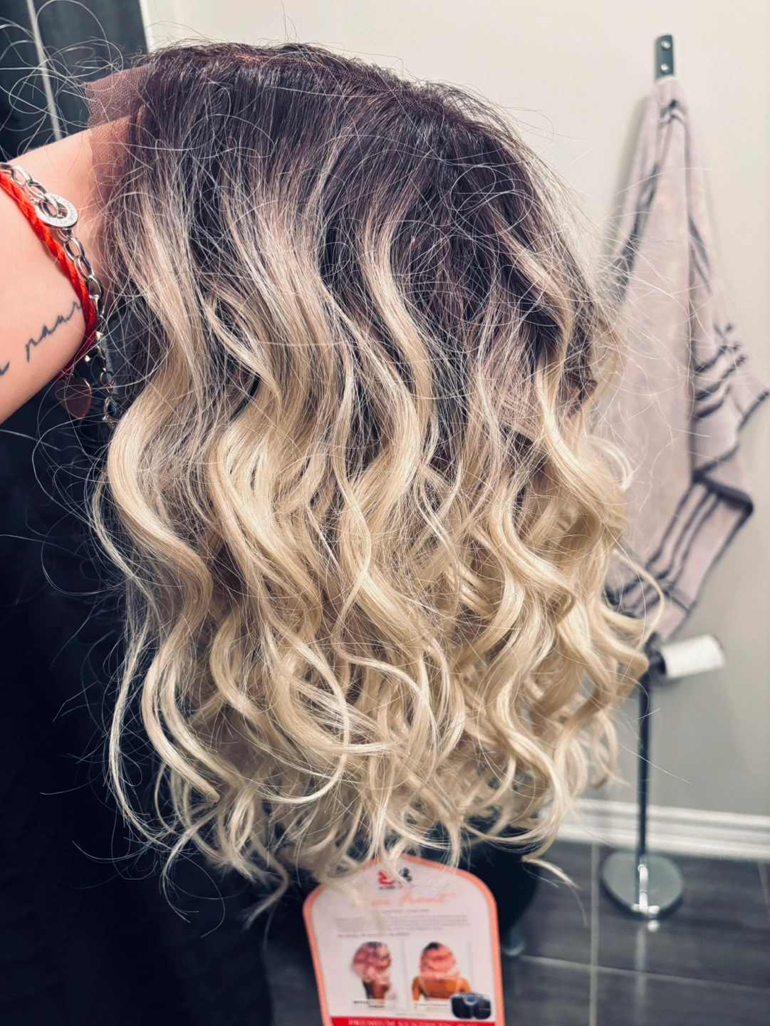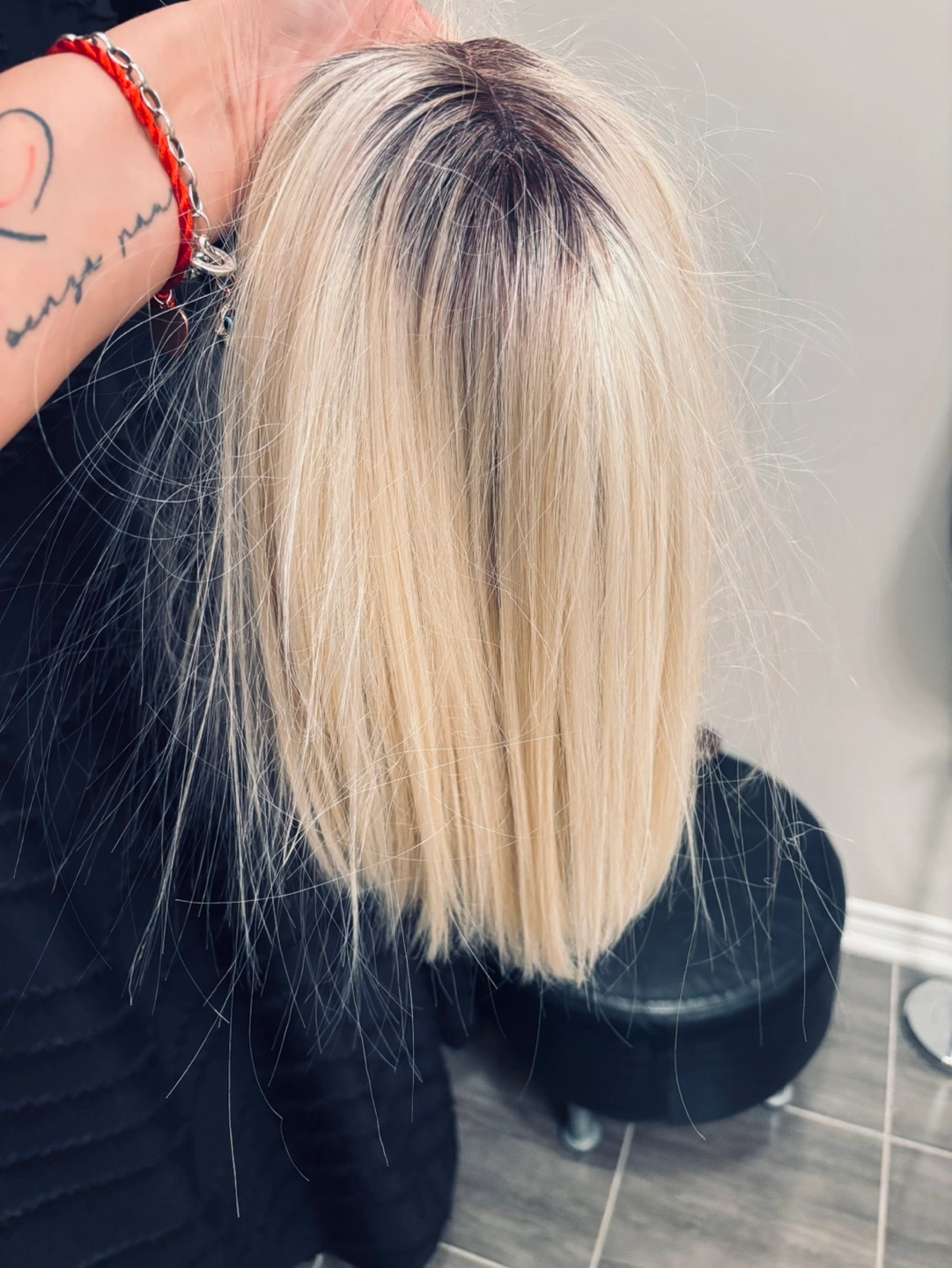 Blonde synthetic lace front wig. Hand-tied, features a deep part. Comes in various colours. Premium synthetic, heat-safe styling.i have 2 a straight and wavy one!