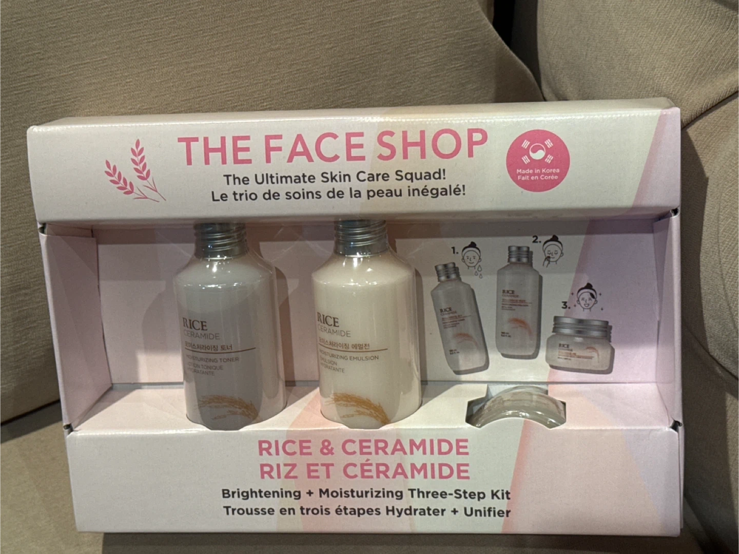 Selling THE FACE SHOP Rice & Ceramide Brightening + Moisturizing Three-Step Kit This kit includes: - Rice Ceramide Moisturizing Toner - Rice Ceramide Moisturizing Emulsion - Rice Ceramide Moisturizing Cream Perfect for a brightening and moisturizing skincare routine