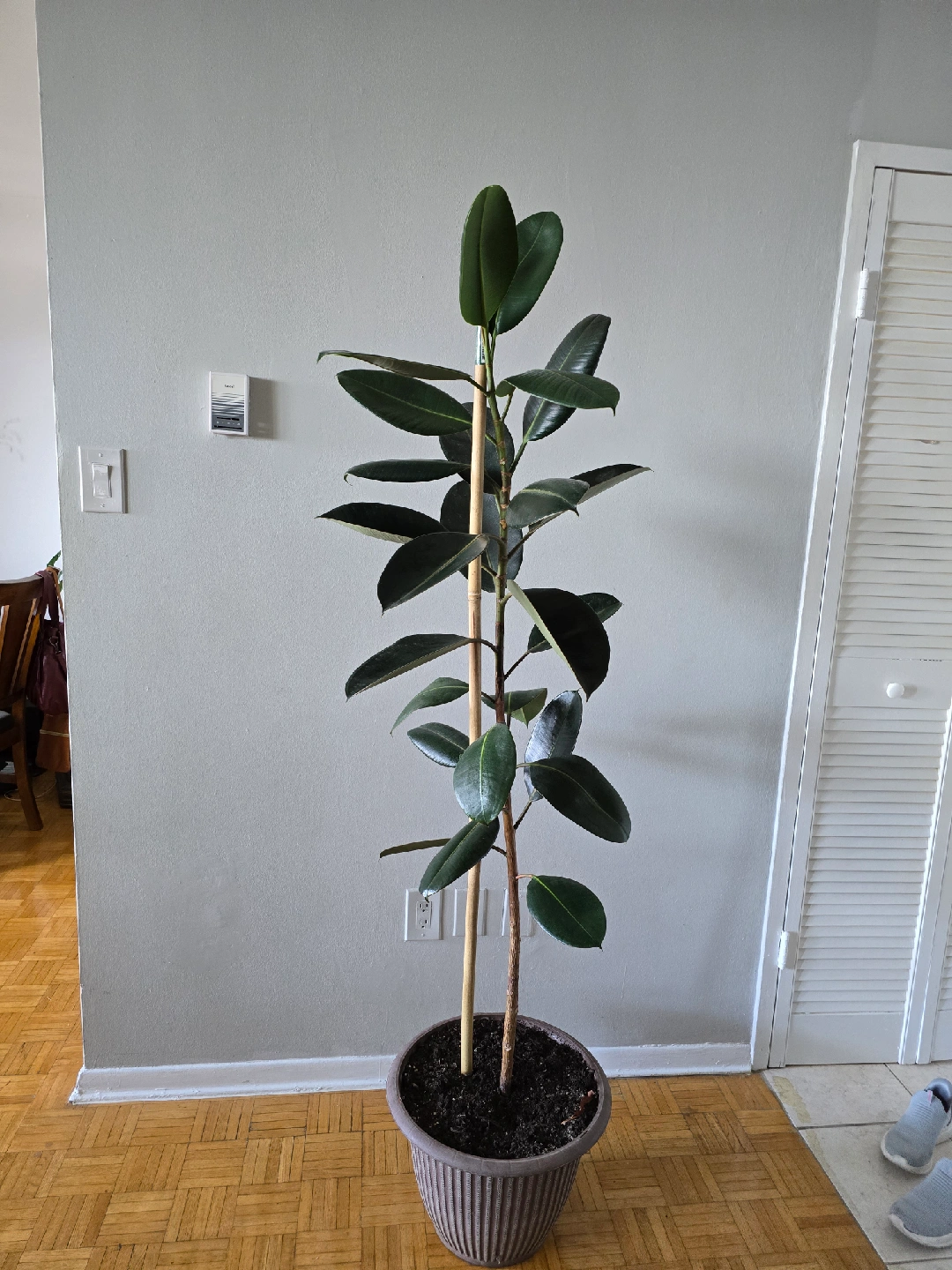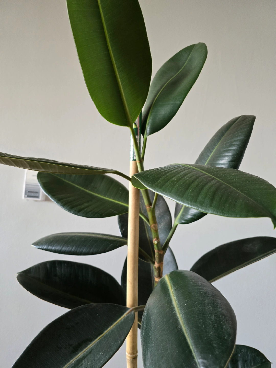 This is a Ficus Elastica plant, also known as a rubber plant. It's a lovely indoor plant to add some greenery to your space. 2 meters tall.