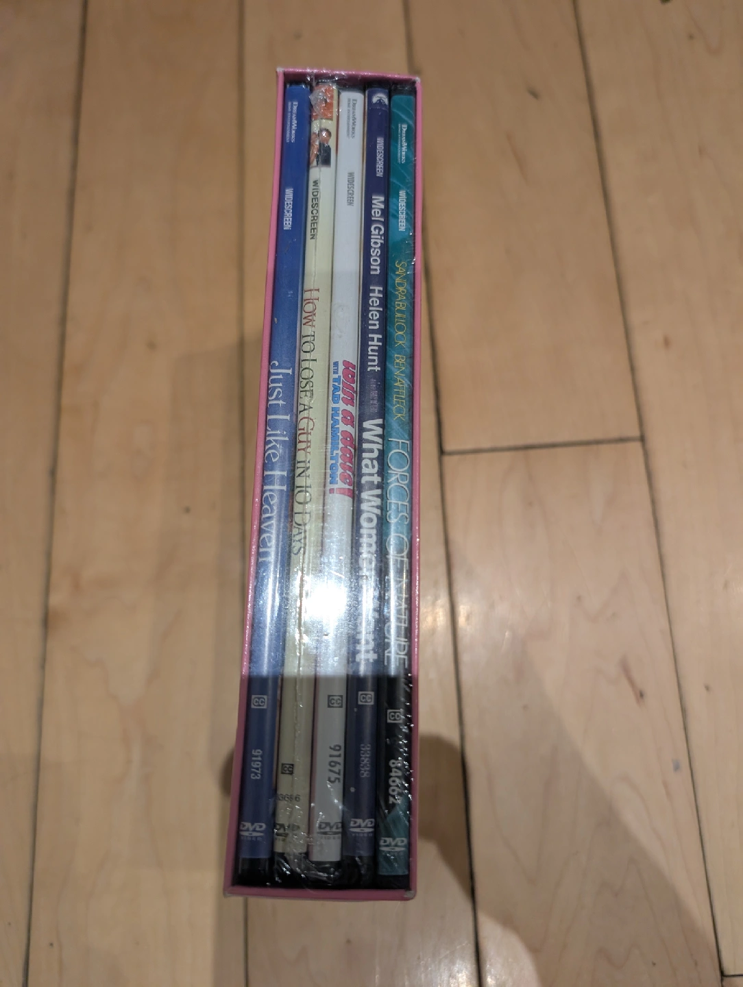 Sealed in original packaging. Includes titles: Just Like Heaven, Win a Date With Tad Hamilton, How to Lose a Guy in 10 Days, What Women Want, Forces of Nature