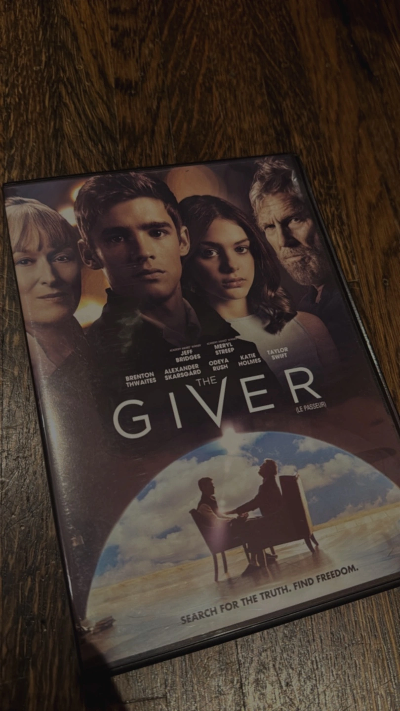 Selling a DVD of the movie 'The Giver'. It features a star-studded cast including Jeff Bridges, Meryl Streep, and Taylor Swift!