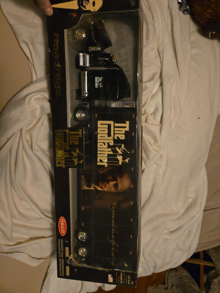 Selling a The Godfather Peterbilt Road Rigz in 1:32 scale. It's a Jada Style Road Rigz. The box is included!