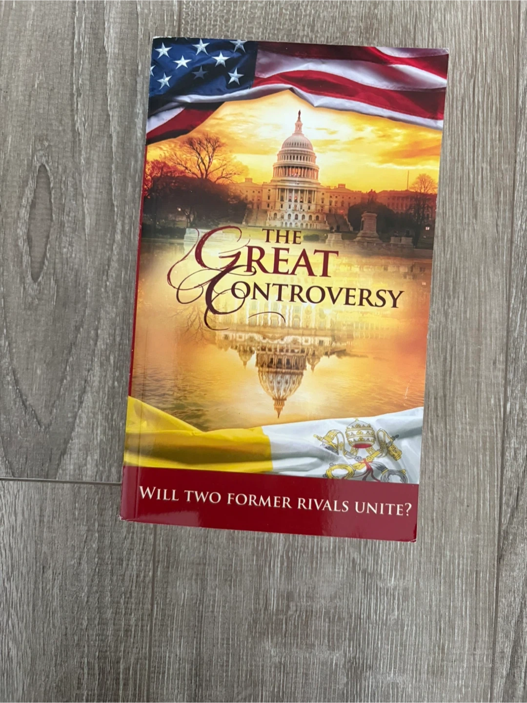 Selling a copy of "The Great Controversy". The book asks "Will two former rivals unite?"